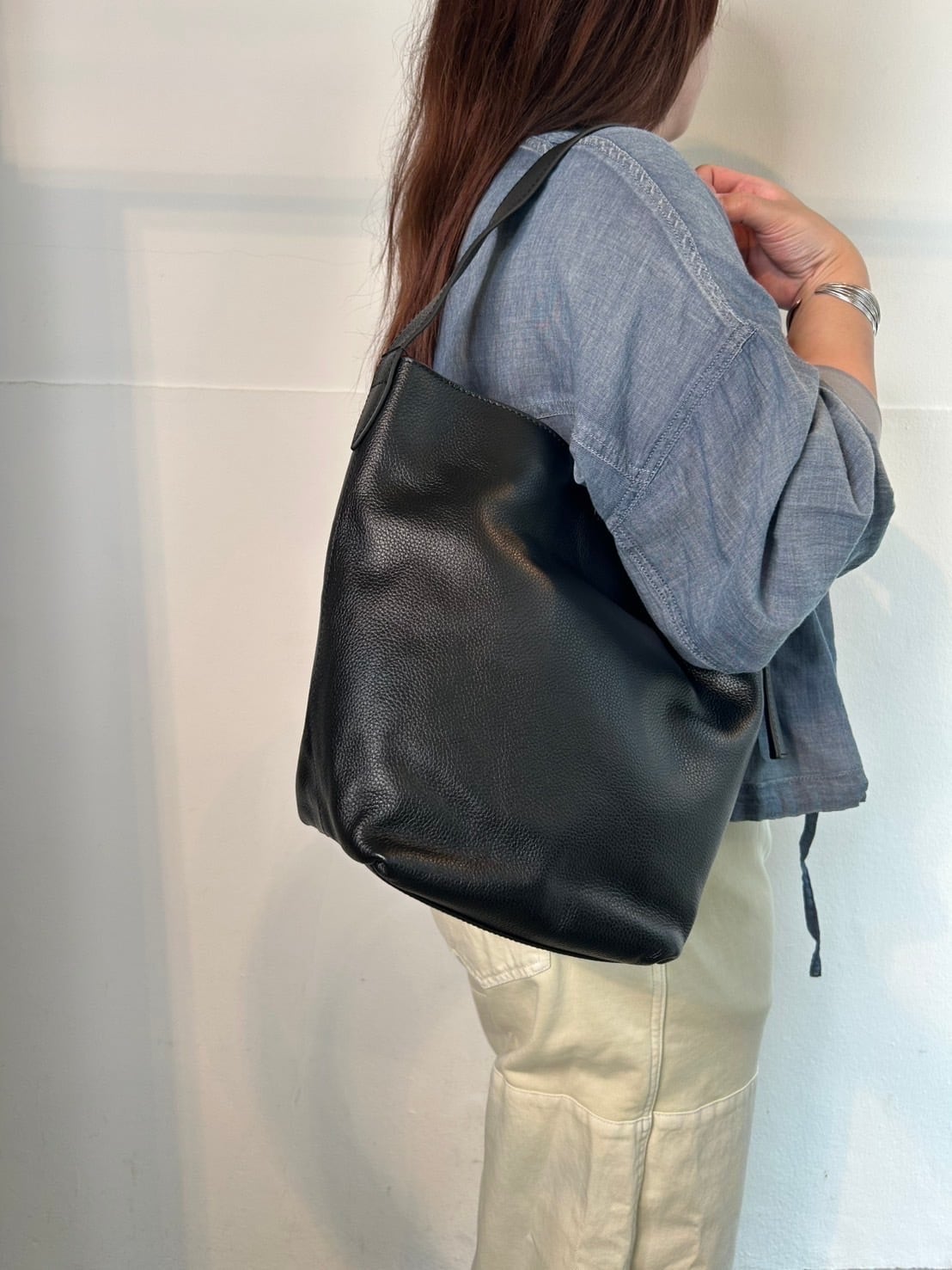 ミディアムサイズは肩から掛けれるハンドルの長さでもちやすく、幅広いスタイリングにマッチします。素材には上質なシュリンクレザーを採用し、本革のならでは魅力を味合うことができます。内ポケット:ジップポケット×1 オープンポケット×1