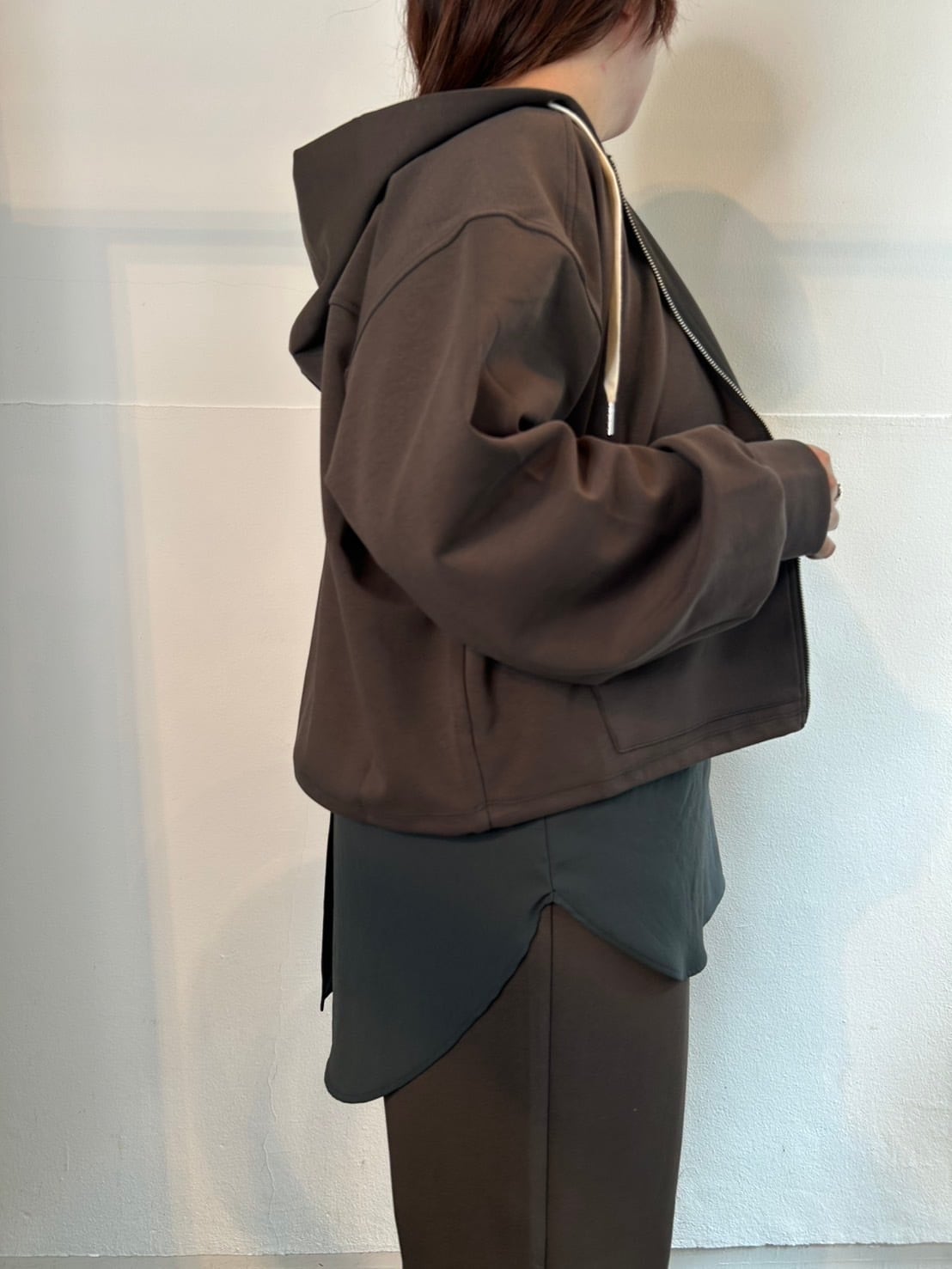 9月29日のインスタライブにてご紹介したミニロゴフーディ。胸元のミニロゴがキャッチ―なボンディングカットソー素材のパーカー。シャツやブラウスなどを合わせたきれい目カジュアルなスタイリングがトレンドライクにきまります。