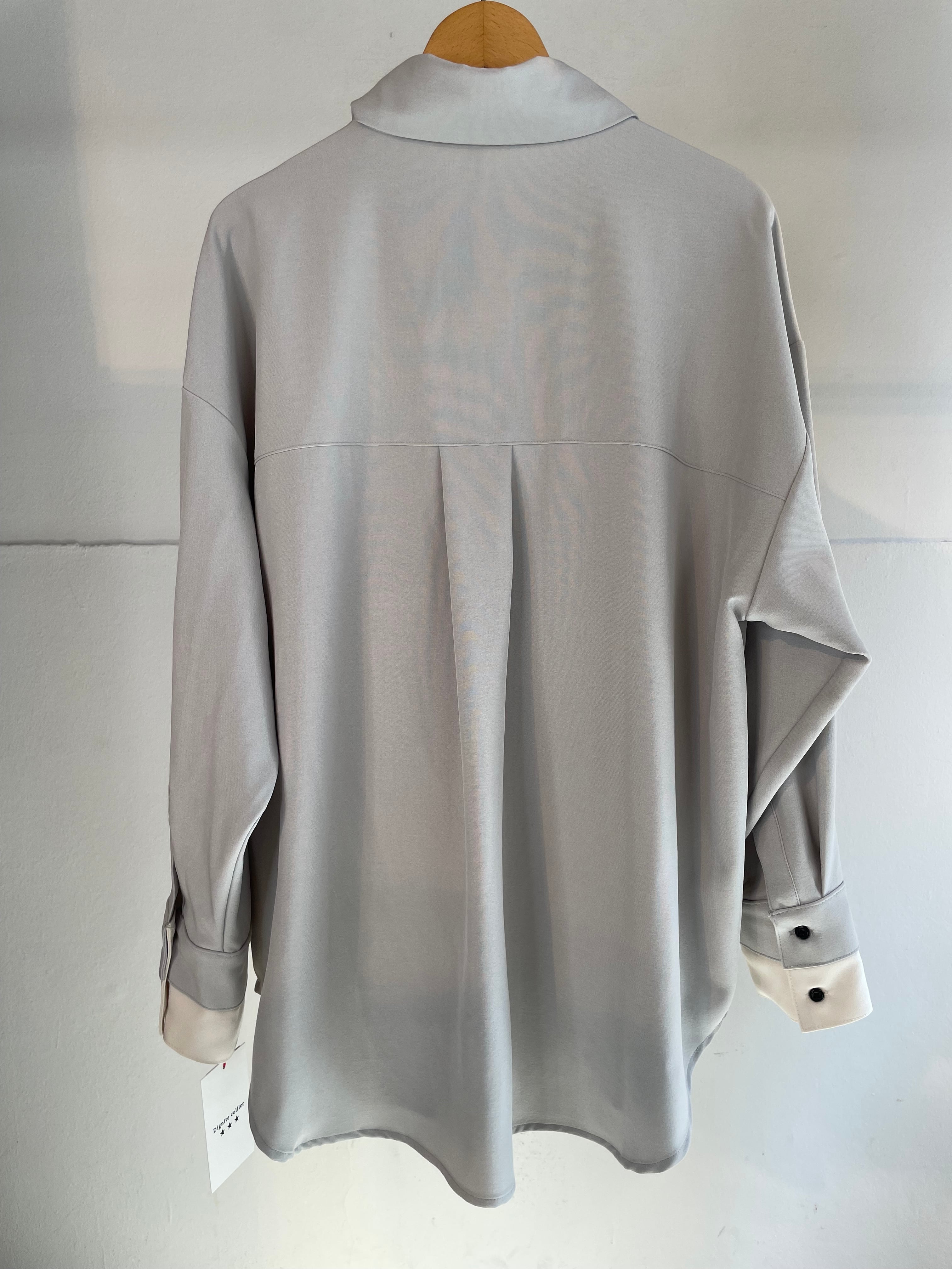 身幅をたっぷりと取ったゆったりとしたシルエットと、背面に施されたタックが美しい立体感とドレープを生み出します。