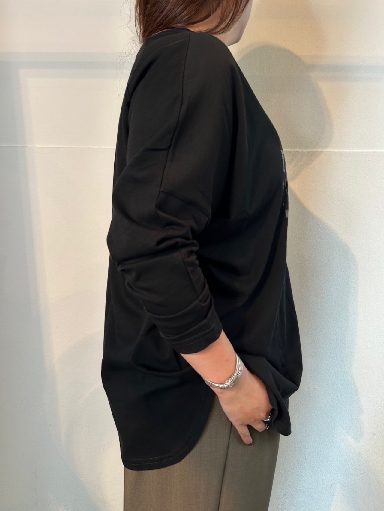 10月13日のインスタライブでご紹介したビルプリント2wayロンT。モノクロのフォトプリントとシンプルなプリントが大人っぽいロンT。気分やスタイリングに合わせてお好きな面で着用可能な前後2way仕様です。