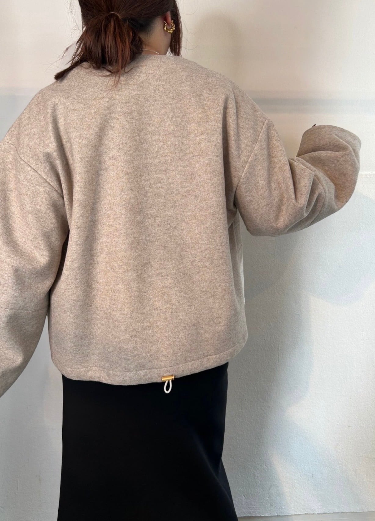 10月28日のインスタライブでご紹介したスナップボタンショートブルゾン。袖部分にボリュームがあり抜け感が出せるのが特徴。ポケット付きで、裾部分はギャザーがあり雰囲気を変えることができます。
