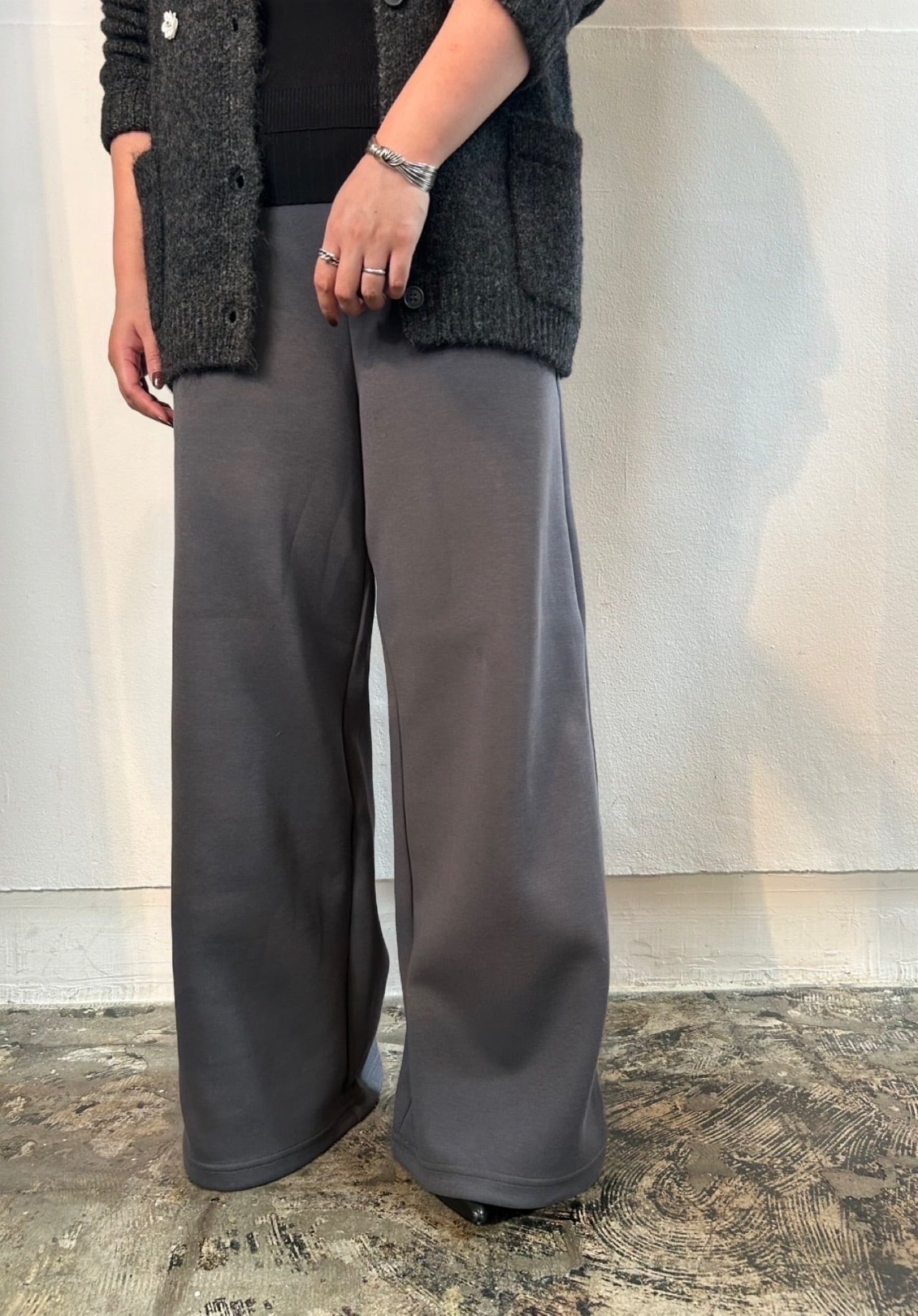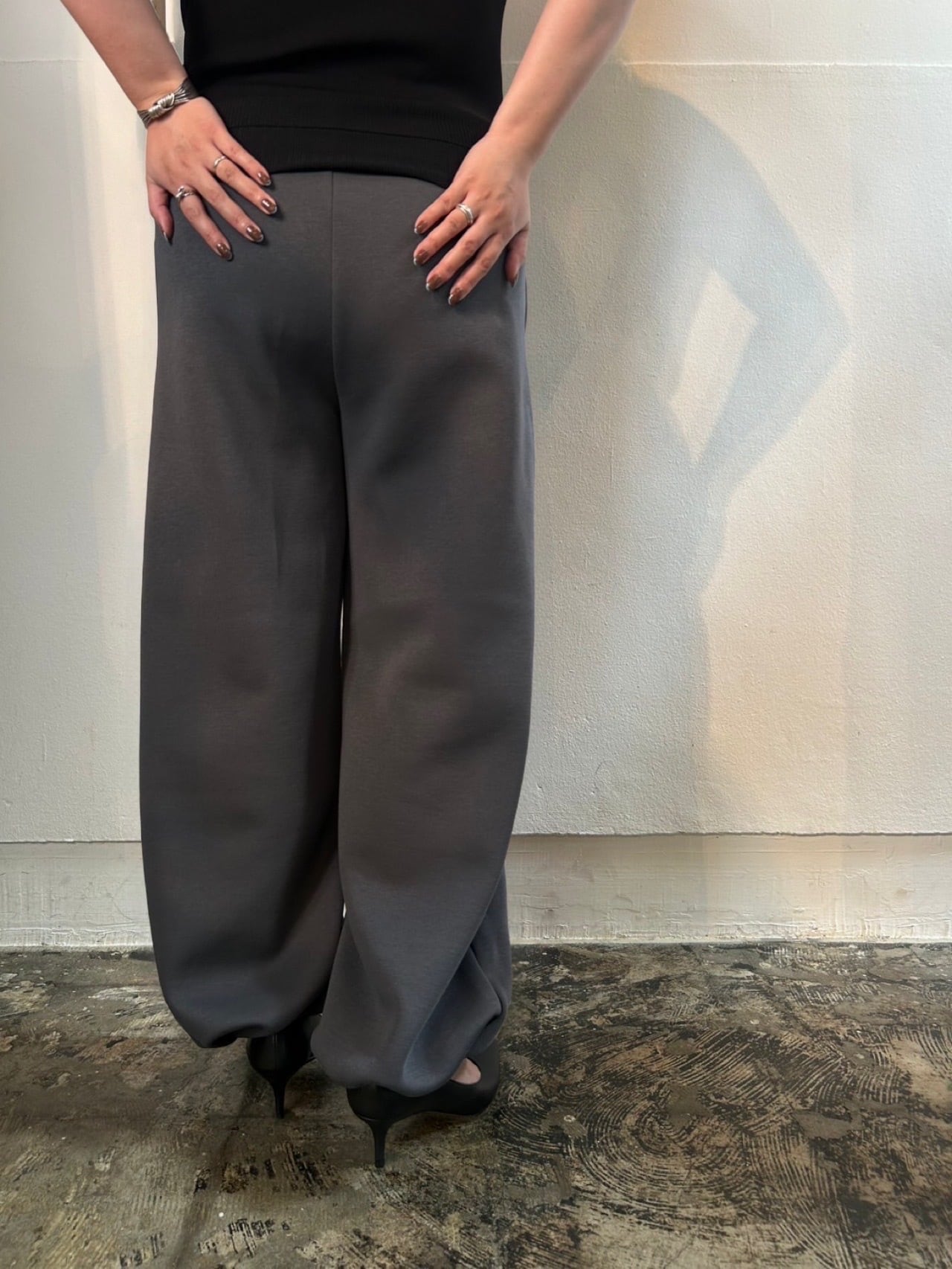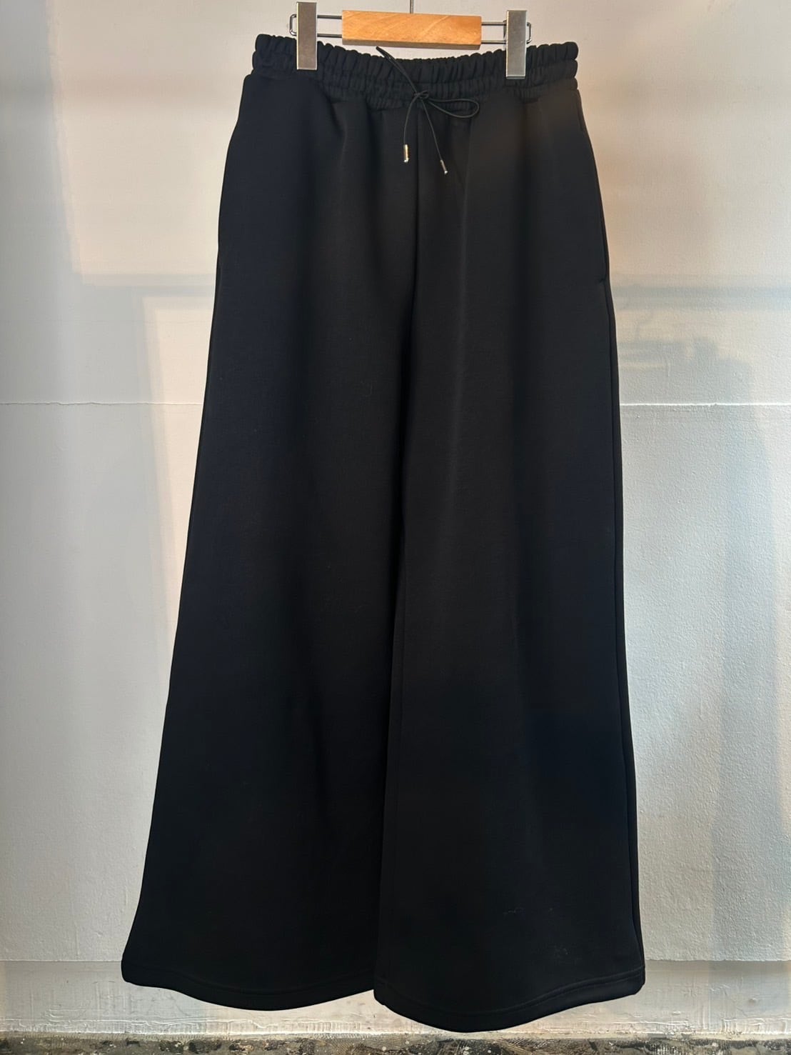 カジュアルになりがちなスウェットパンツも程よいゆとりと裾に向かって広がったデザインは女性らしい仕上がりに。裾のドローコードで絞ればシルエットの変化も楽しめます。