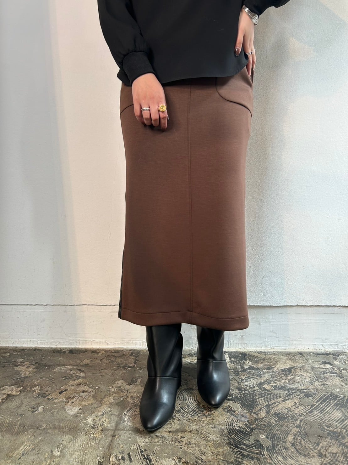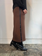 11月11日のインスタライブでご紹介したレザーラインタイトスカート。ポリレーヨンのしなやかなスムース素材でストレッチ性が抜群な履き心地。