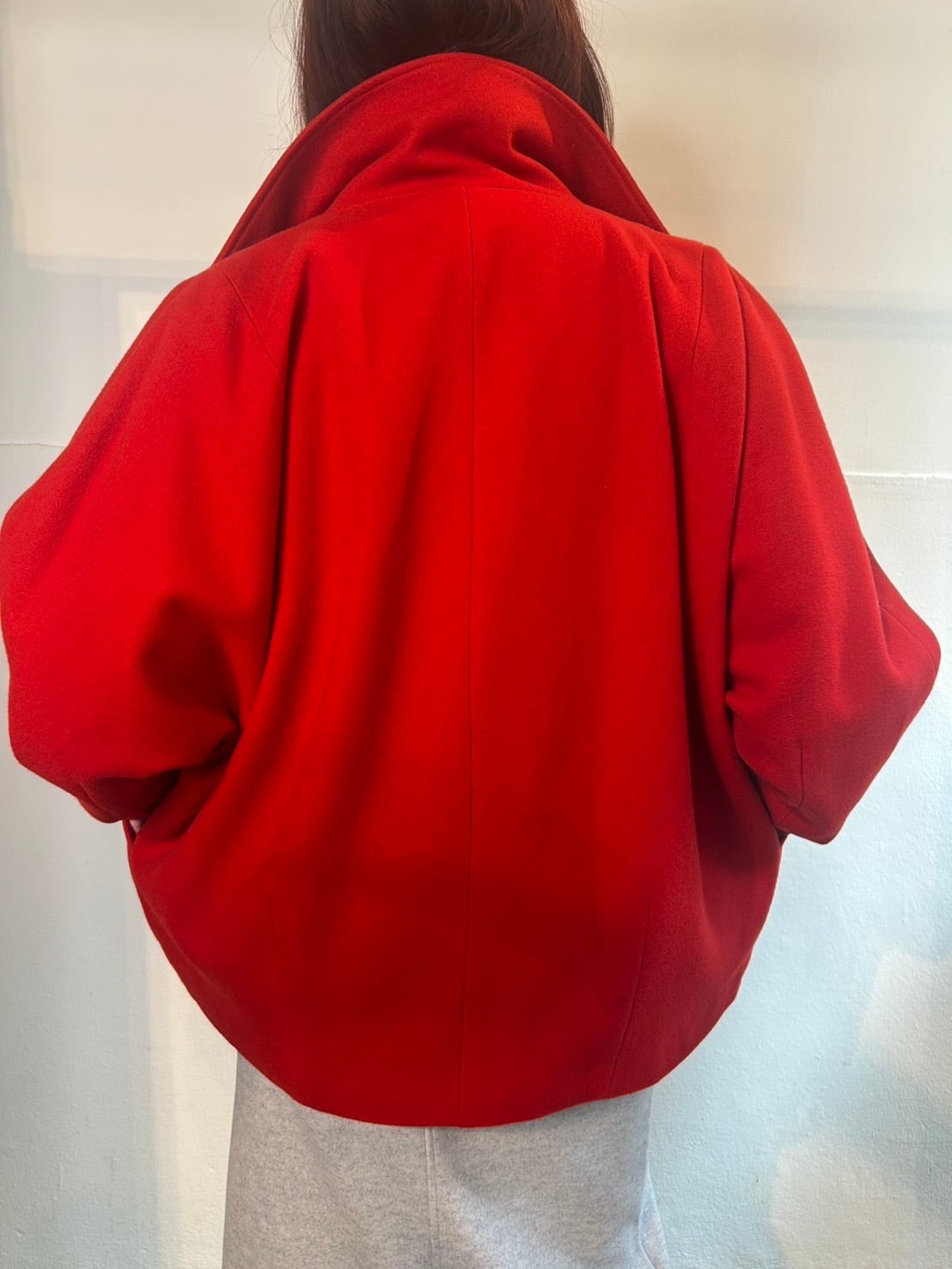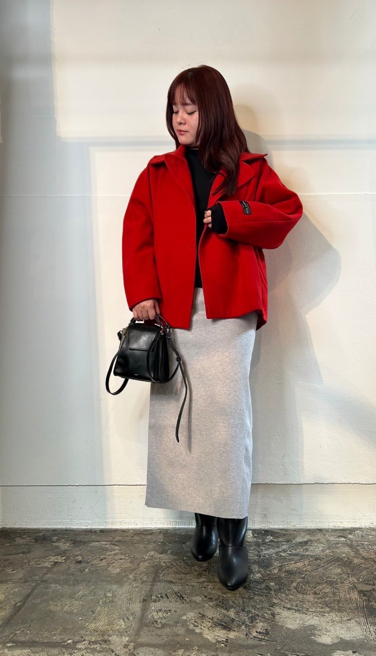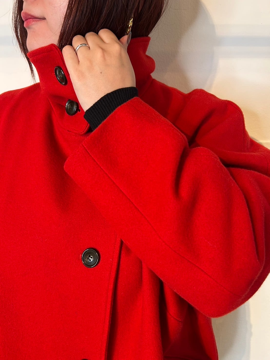 11月24日のインスタライブでご紹介したメルトンコクーンドルマンコート。後裾にダーツを施し丸みを出したシルエットです。インナーを選ばないゆったりしたドルマンスリーブ。