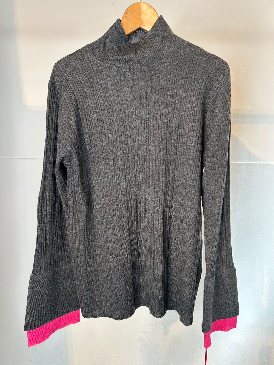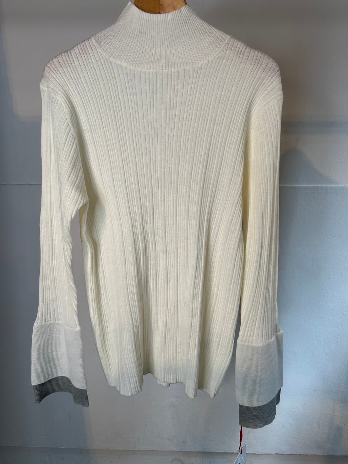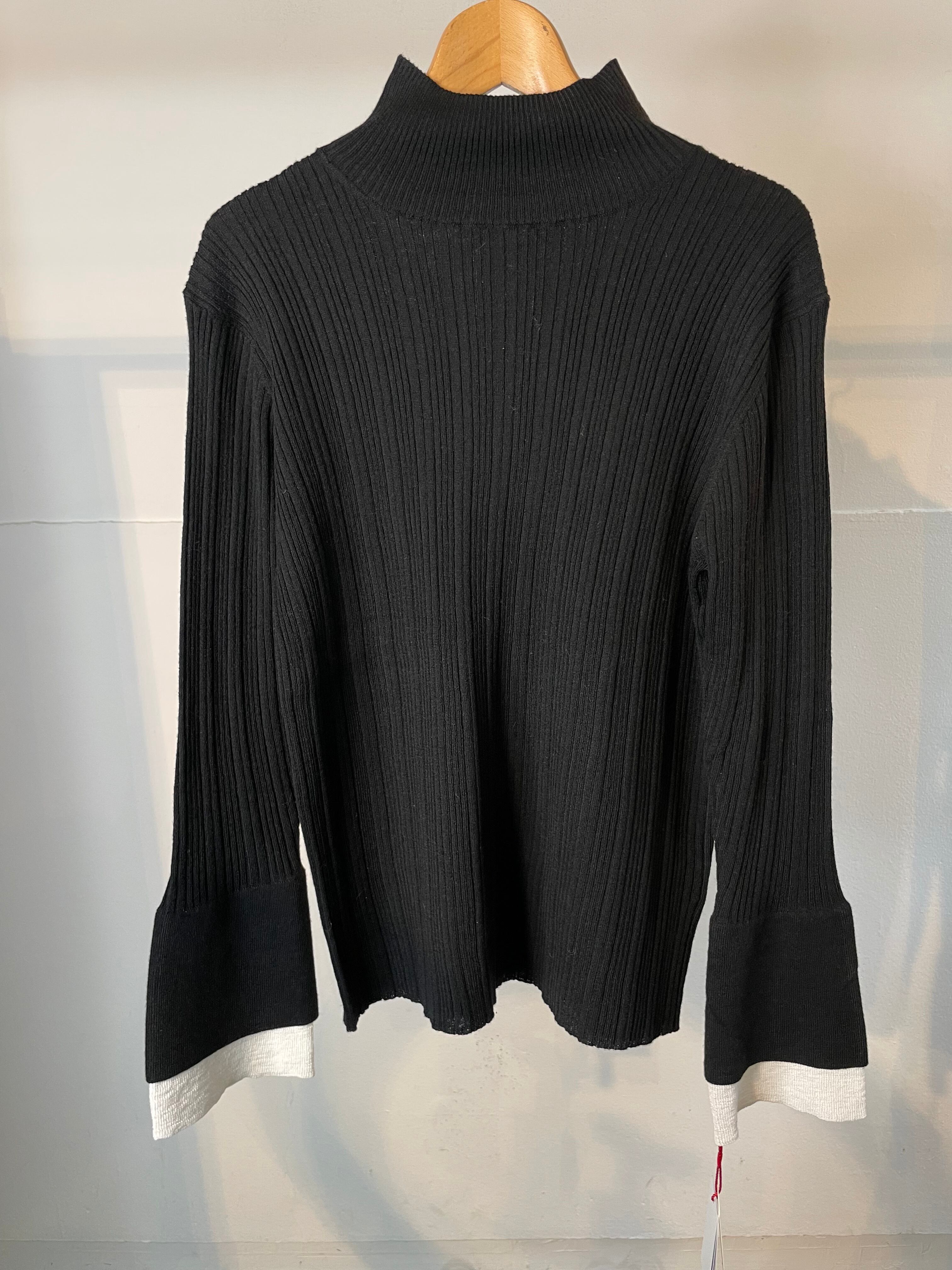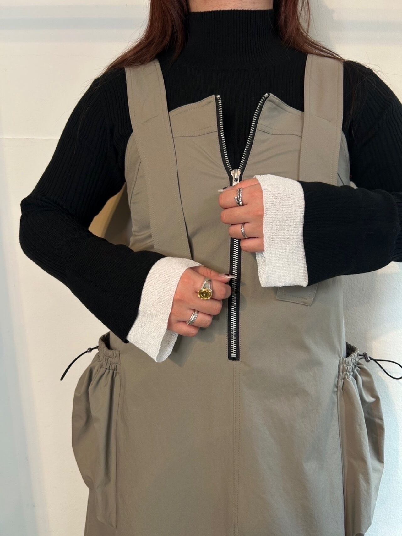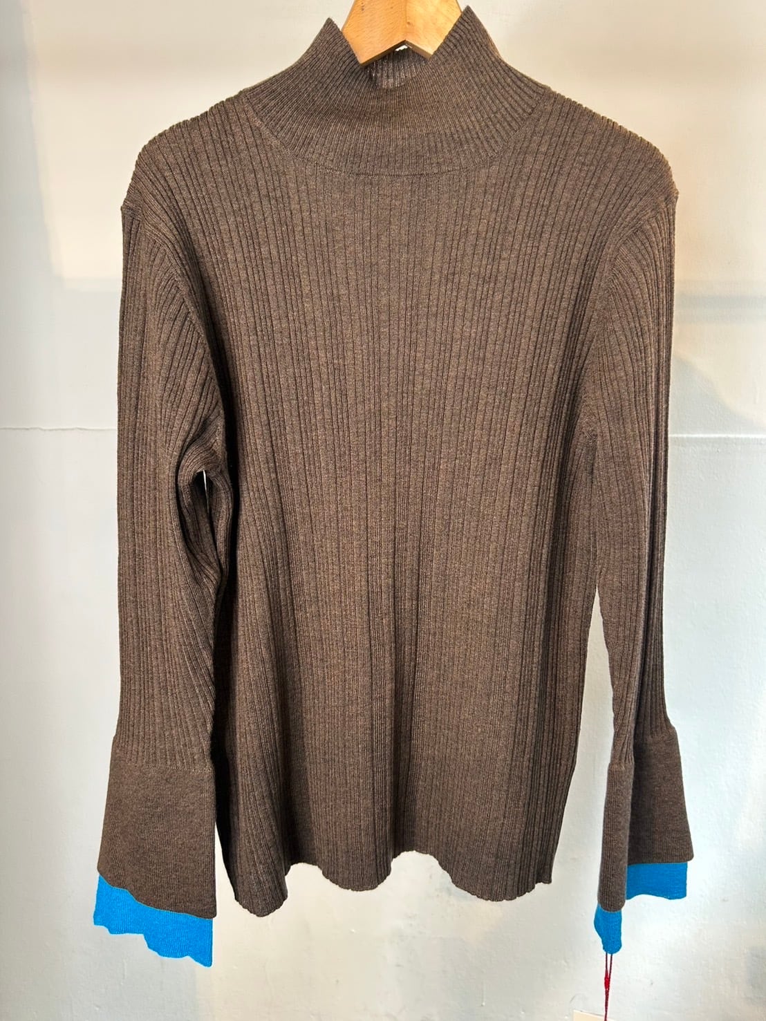 12月9日のインスタライブでご紹介した袖レイヤードハイネックニット。袖がバイカラーになったリブニット。伸縮性があり着心地◎薄手なのでインナー使いもして頂けます。