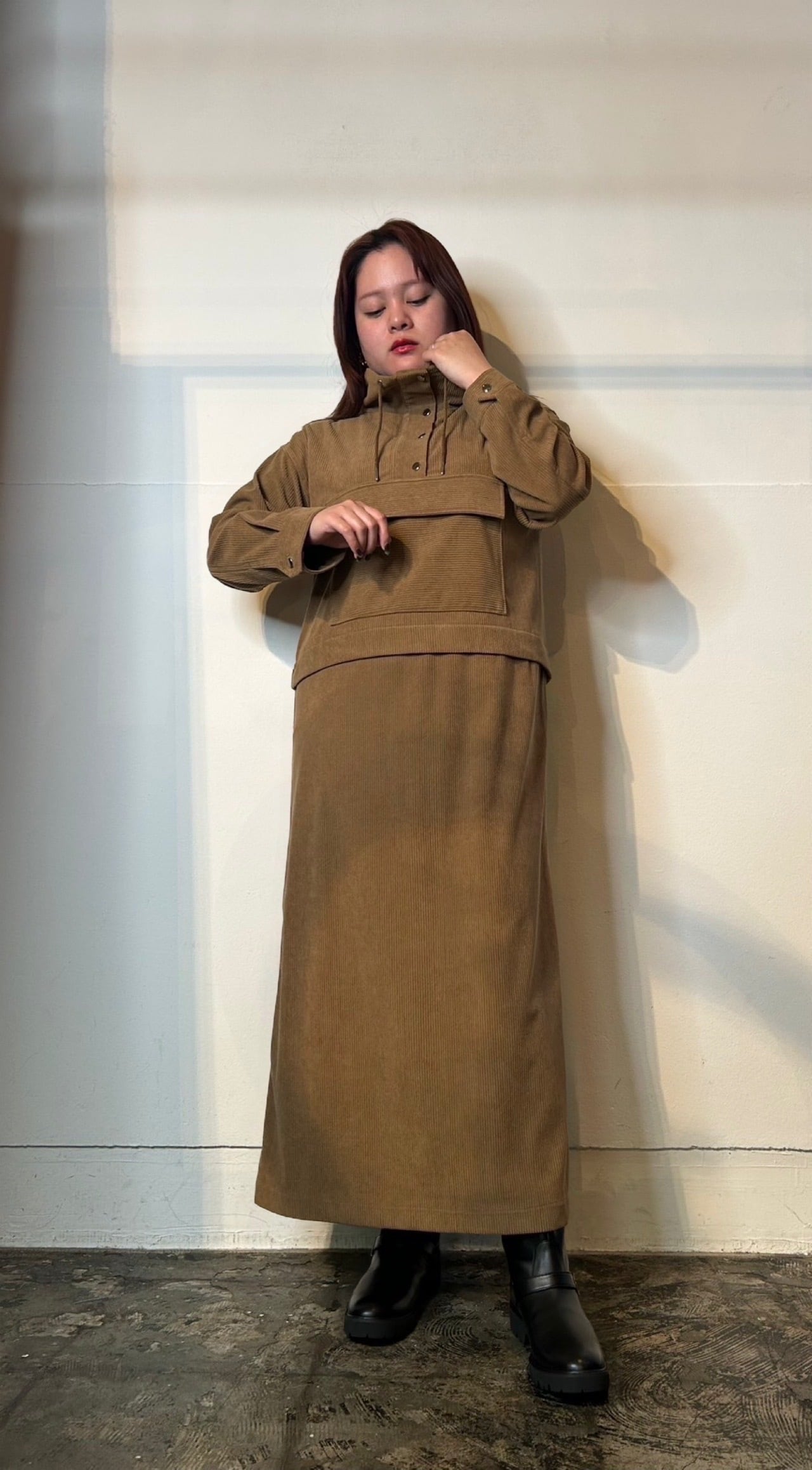 12月16日のインスタライブにてご紹介したスタンドカラーコーデュロイワンピース。アウトドアテイストを取り入れたデザインでカジュアルに着て頂けるワンピース。スタンドカラーが首元の防寒にも役立ちスタイリッシュな印象に。
