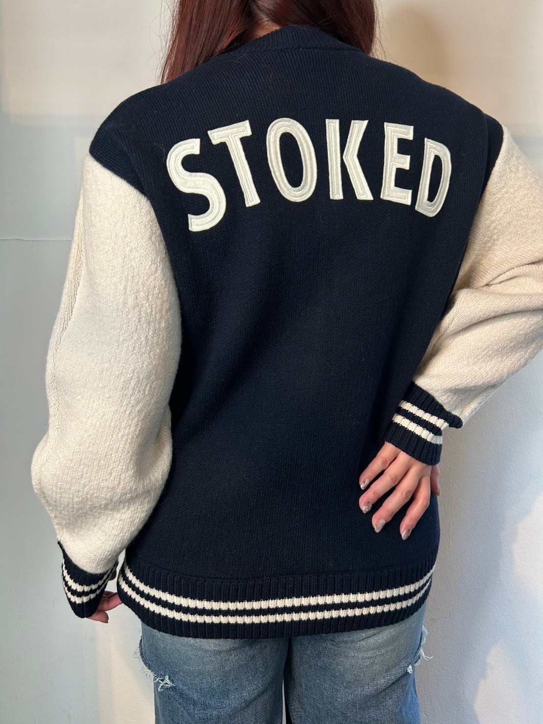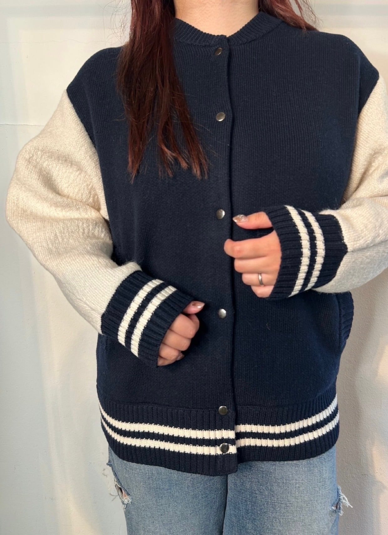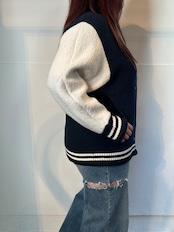 1月6日のインスタライブでご紹介したロゴニットブルゾン。スタジャンデザインが可愛いバックロゴ入りのニットブルゾンです。ゆったりとしたオーバーサイズとカジュアルなスタジャンデザインがラフでサマになる1着。