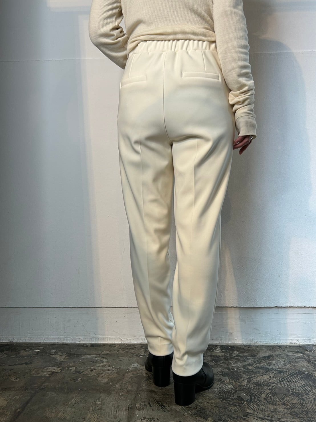 程よいゆとりを持たせたシルエットながらセンタープレスが施されているため、脚のラインをすっきりと美しく見せてくれるのもポイント。柔らかな肌触りでぬくもりに包まれるような