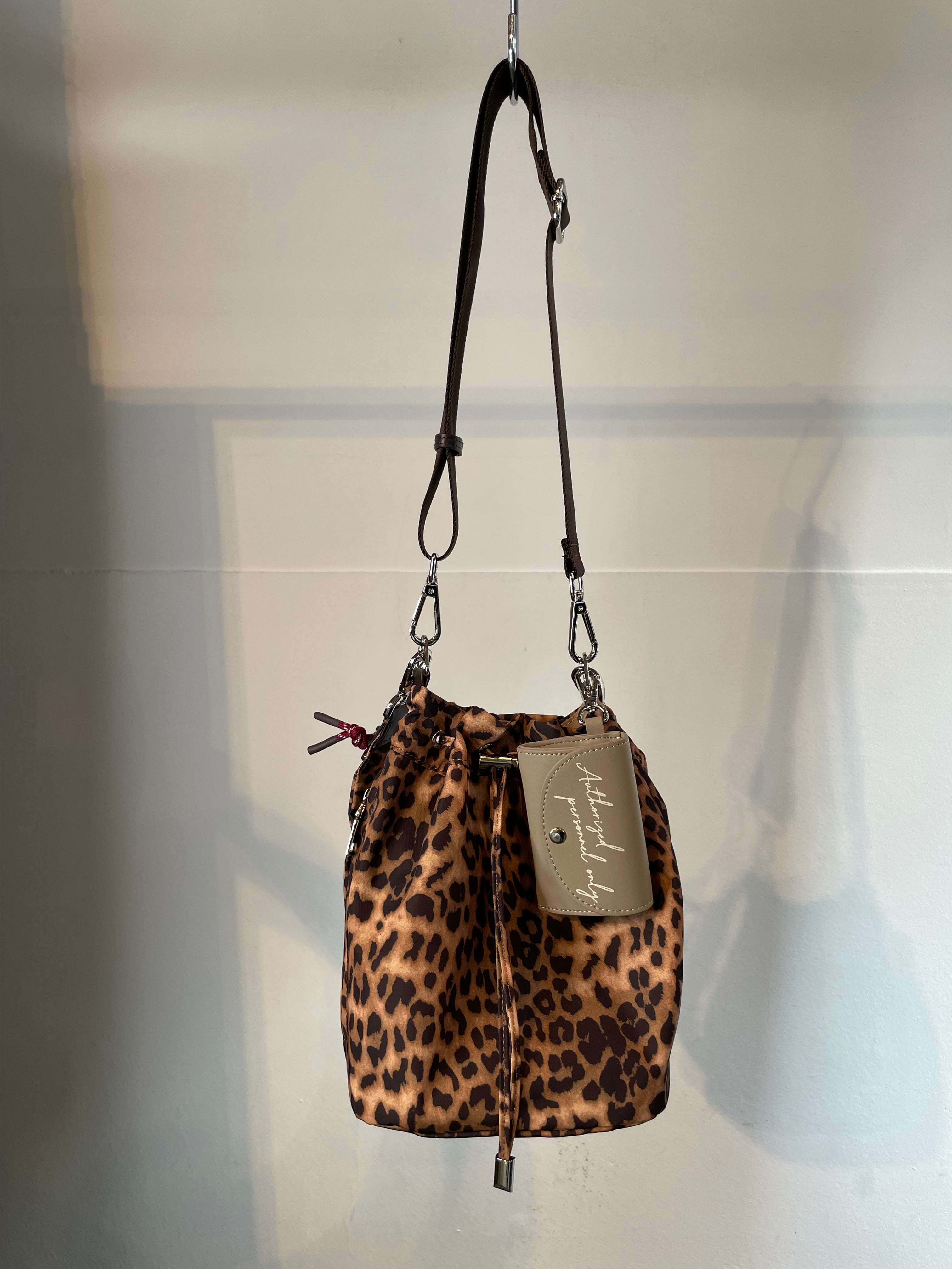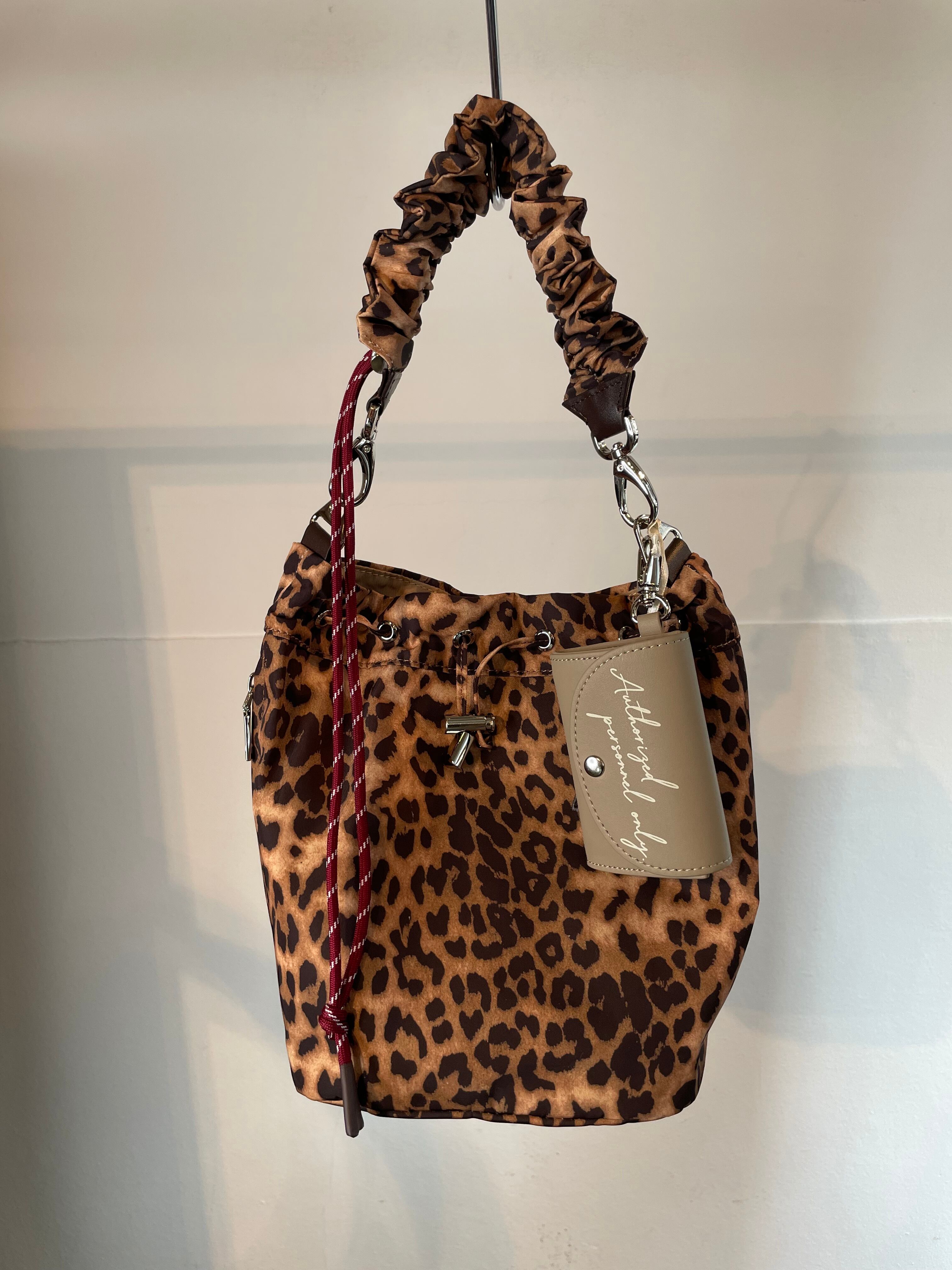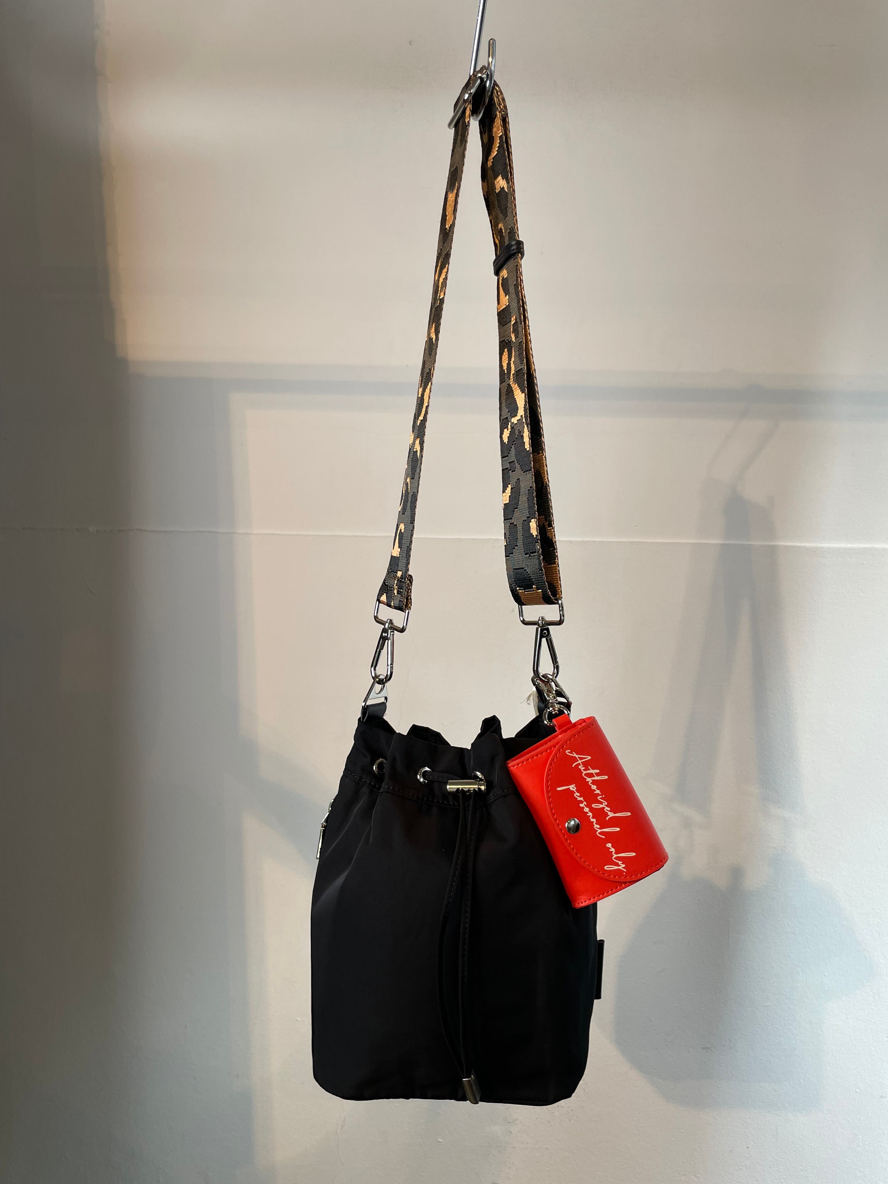 付属のショルダーストラップはパラコードと同色合わのレオパードパターン。また、本体レオパードのみ無地のストラップを採用。シンプルなバッグからアクセ感覚のワンポイントバッグまで幅広く活躍します。