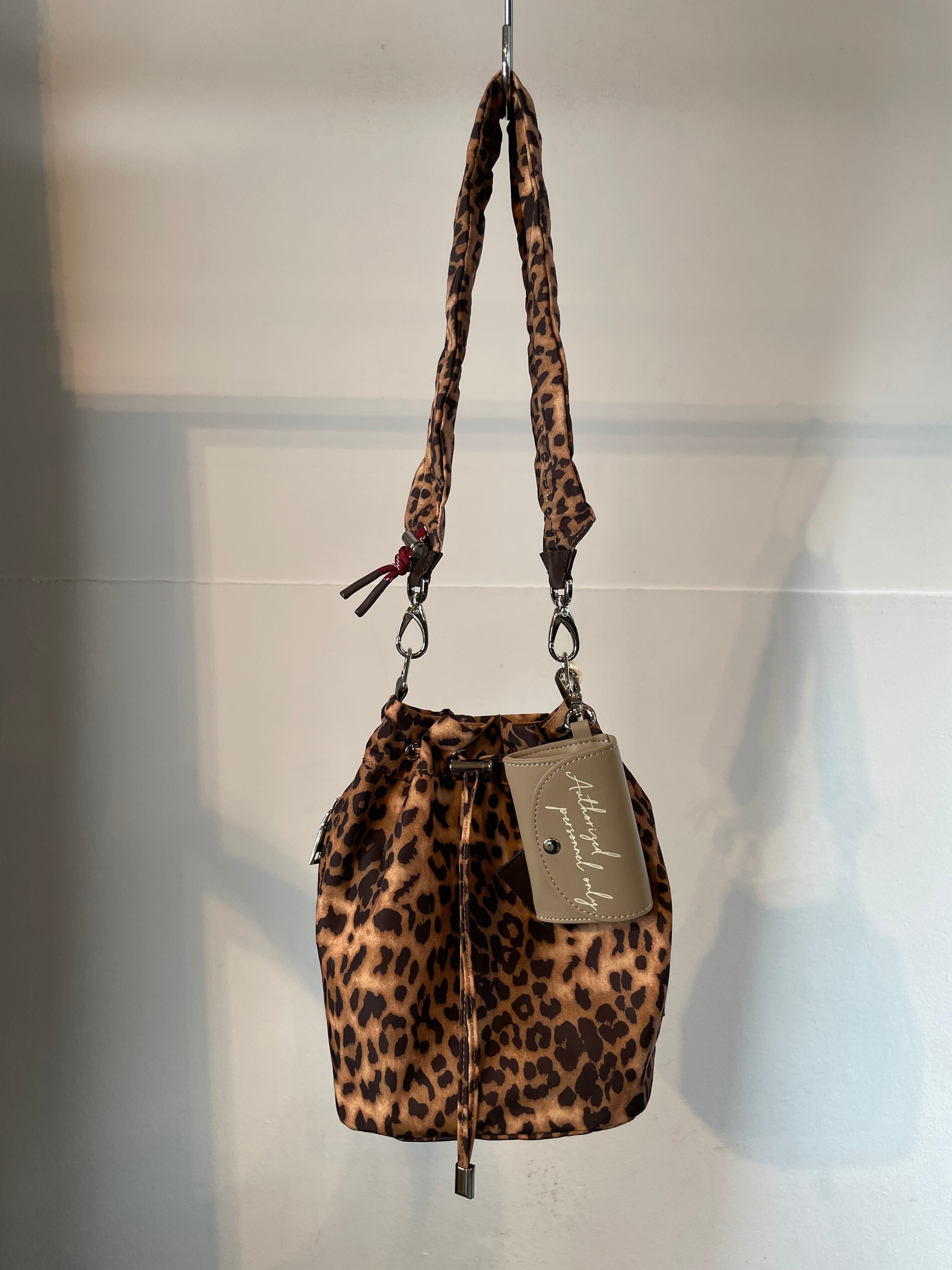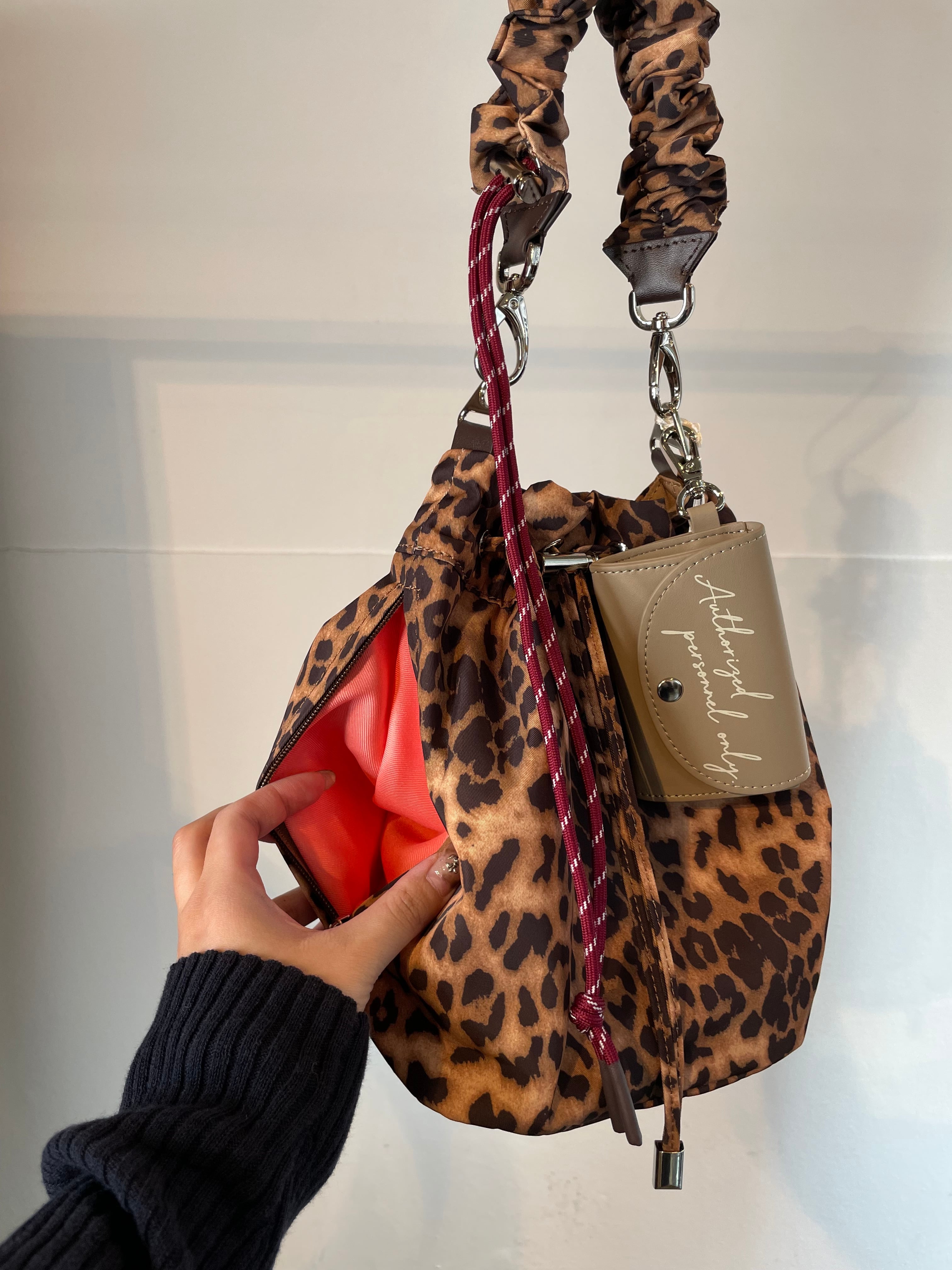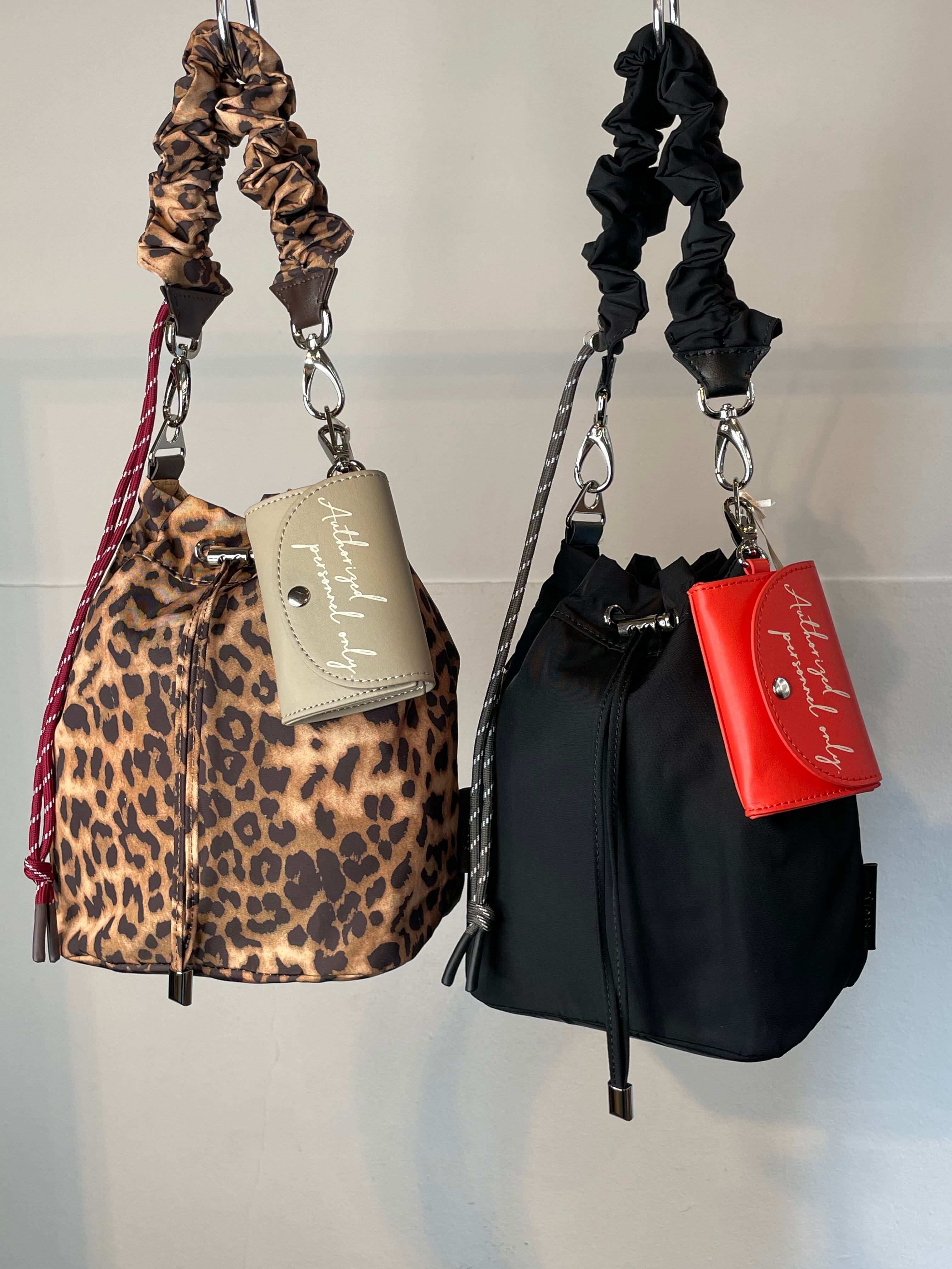 付属のショルダーストラップはパラコードと同色合わのレオパードパターン。また、本体レオパードのみ無地のストラップを採用。シンプルなバッグからアクセ感覚のワンポイントバッグまで幅広く活躍します。