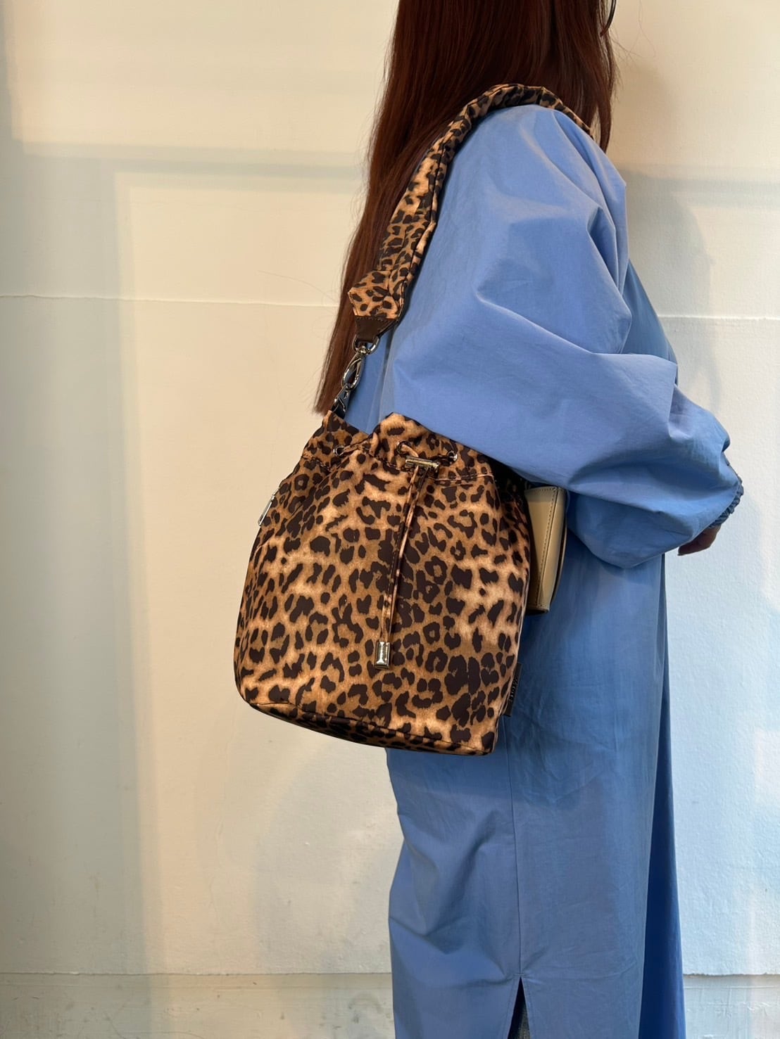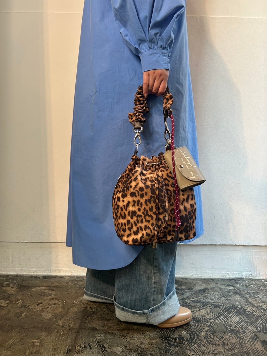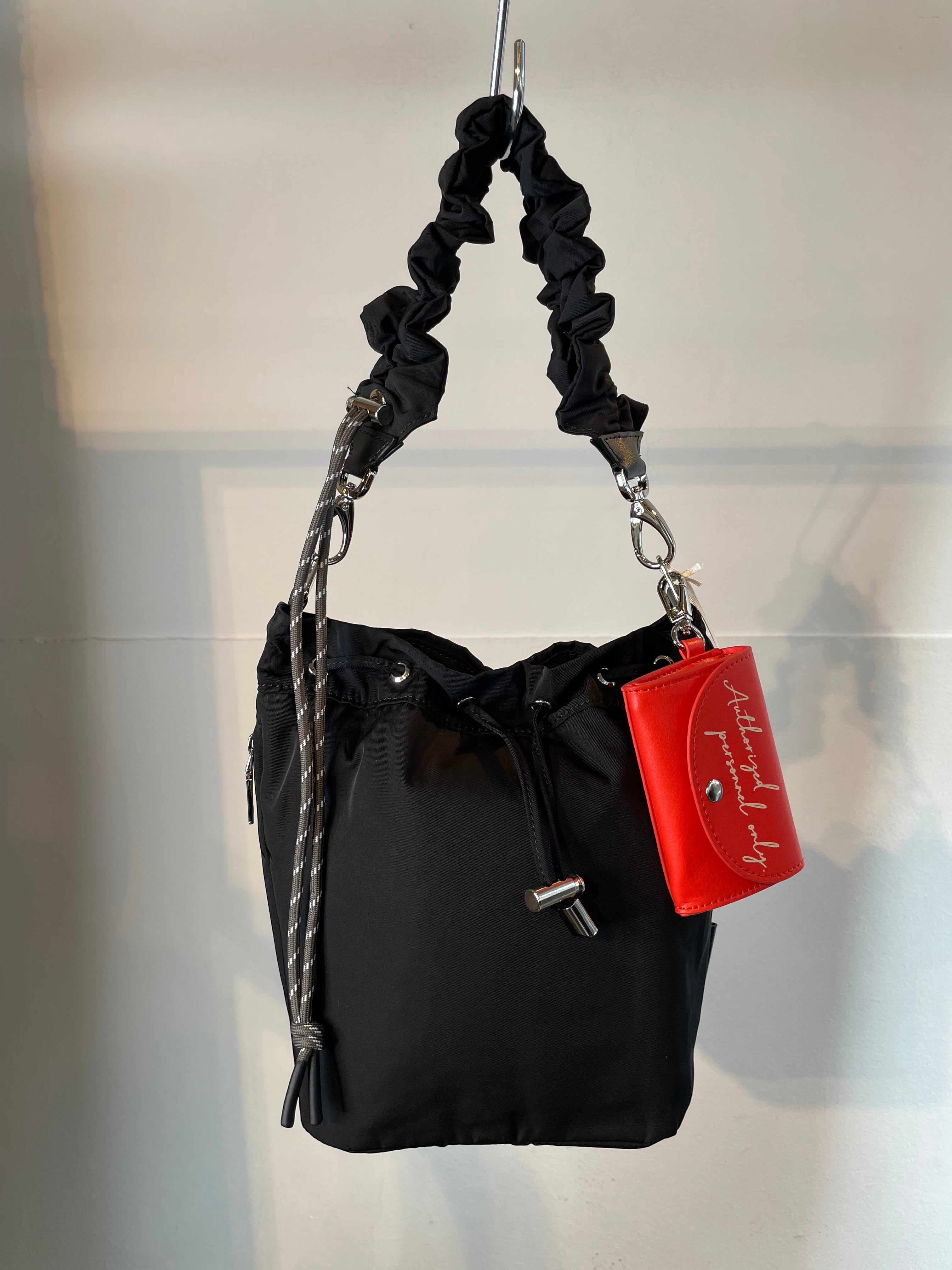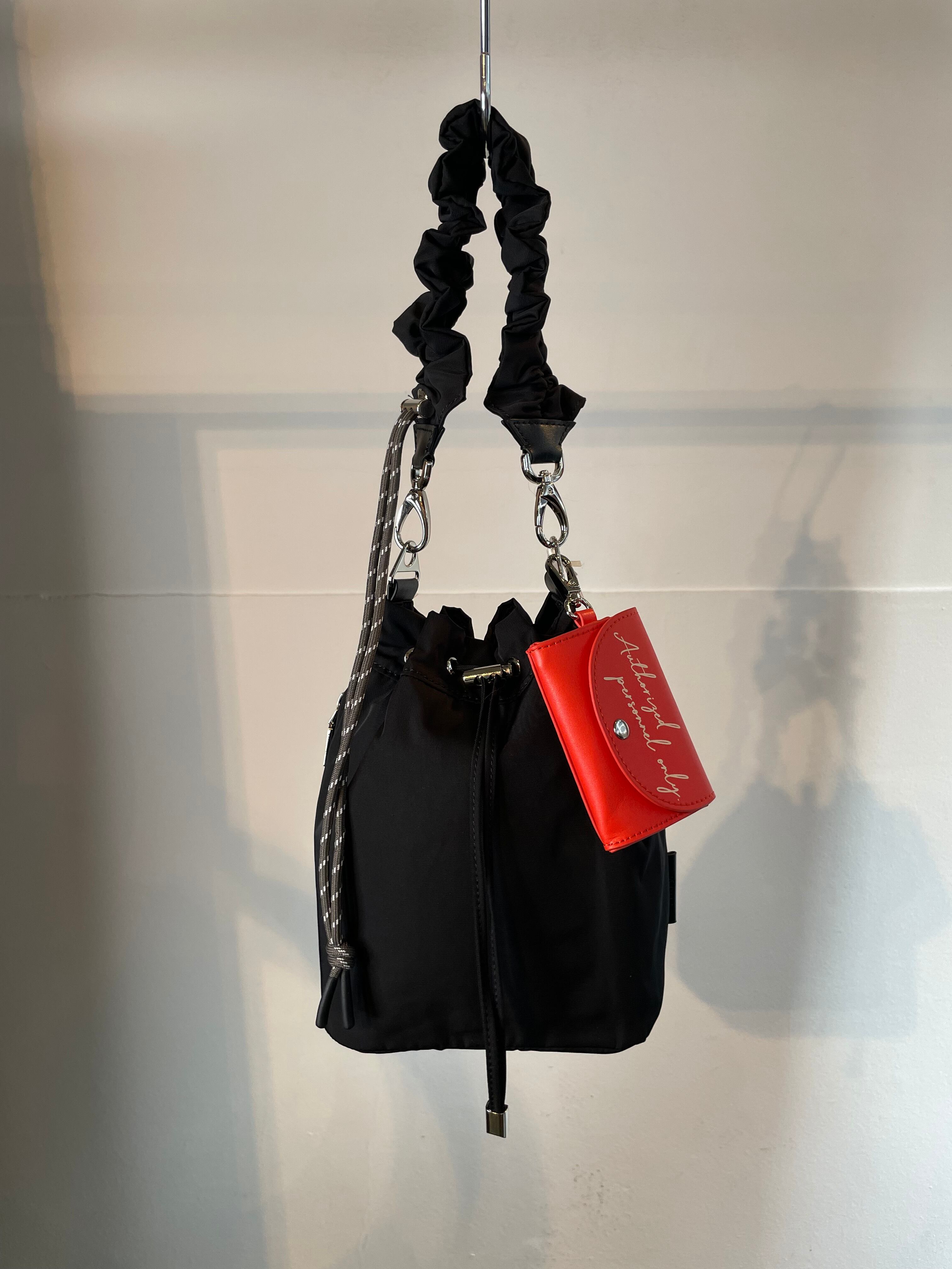2月3日のインスタライブでご紹介したギャザーストラップハンドバッグ。フェミニンなシャーリングストラップが目を惹きます。巾着は絞らずにバゲットバッグとしても使えます。アクセサリー感覚のカラーミニポーチにもカードポケットとナスカンがつき、細かなディテールも作りこまれています。