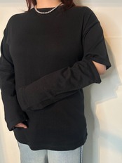 レイヤードスタイルやアクセサリーとのコーディネートで変化をプラスできるのもポイント。身体のラインを拾いすぎない絶妙なサイズ感で、デイリーからラウンジウェアまで幅広くお使いいただけます。