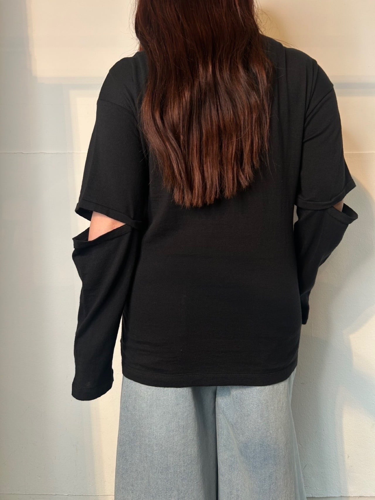 3月18日のインスタライブでご紹介したカシミヤ混エルボースリットニットソー。なめらかで優しいタッチと軽やかな着心地が特徴の、カシミヤ混カットソー素材を使用。袖にあしらわれたエルボースリットデザインが特徴。動くたびに覗く素肌が、シンプルながらも洗練された大人の抜け感を演出してくれます。