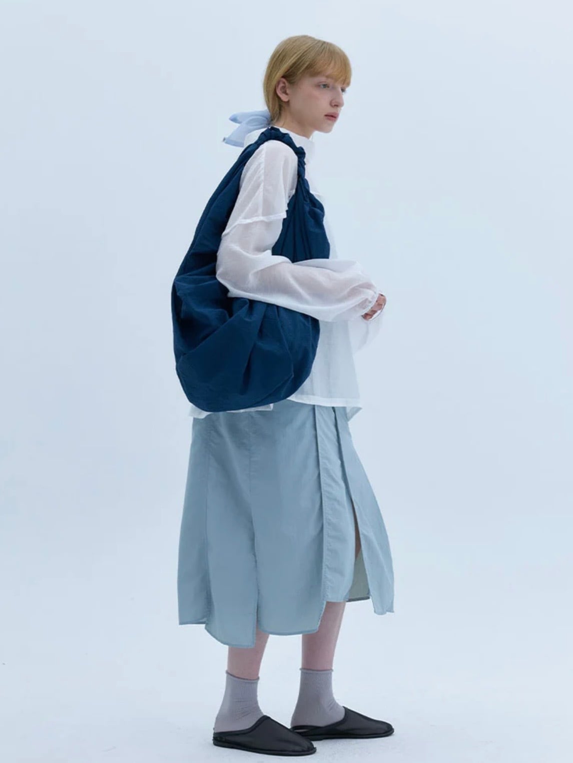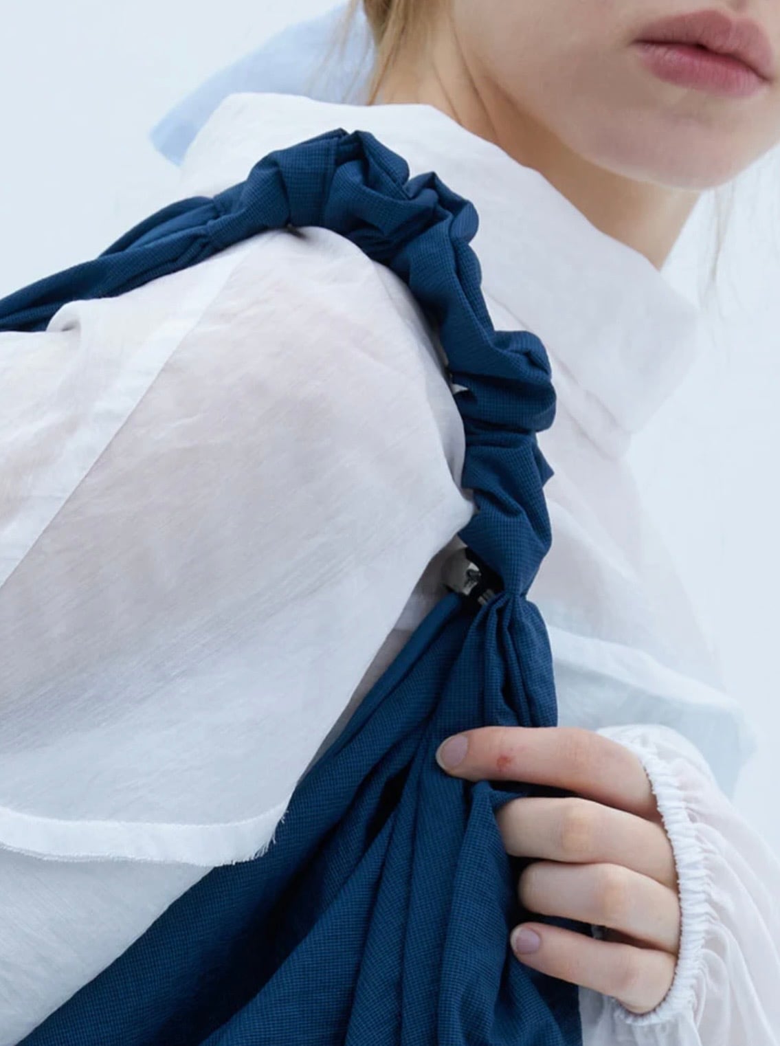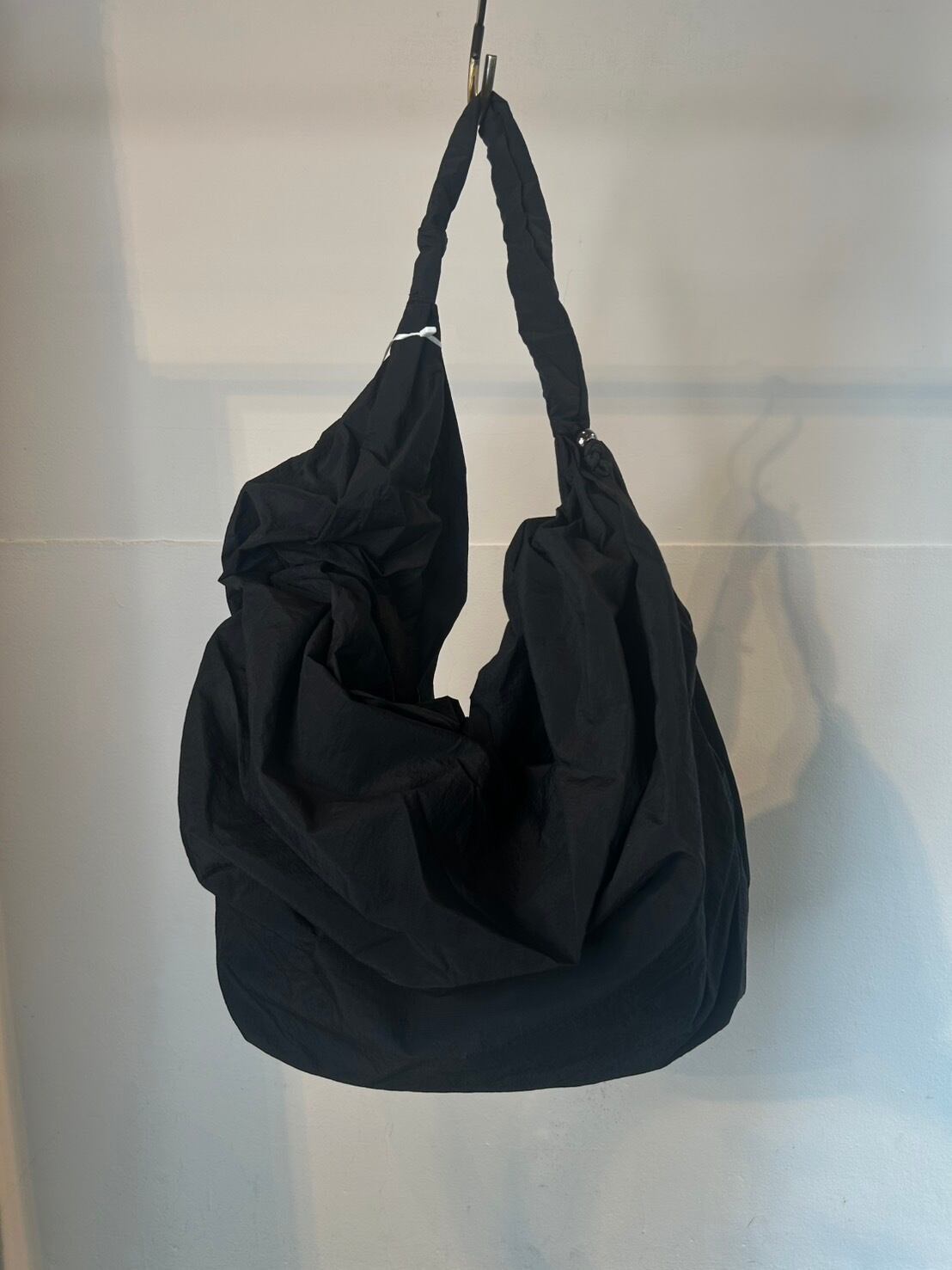 3月25日のインスタライブでご紹介したTANGLE TWIST BAG。軽量なリップストップ生地で仕立てた、ドレープ感のあるシルエットが魅力のバッグ。ツイストデザインのストラップがアクセントになり、ストッパーで長さを調整してショルダーにもクロスにもアレンジ可能です。