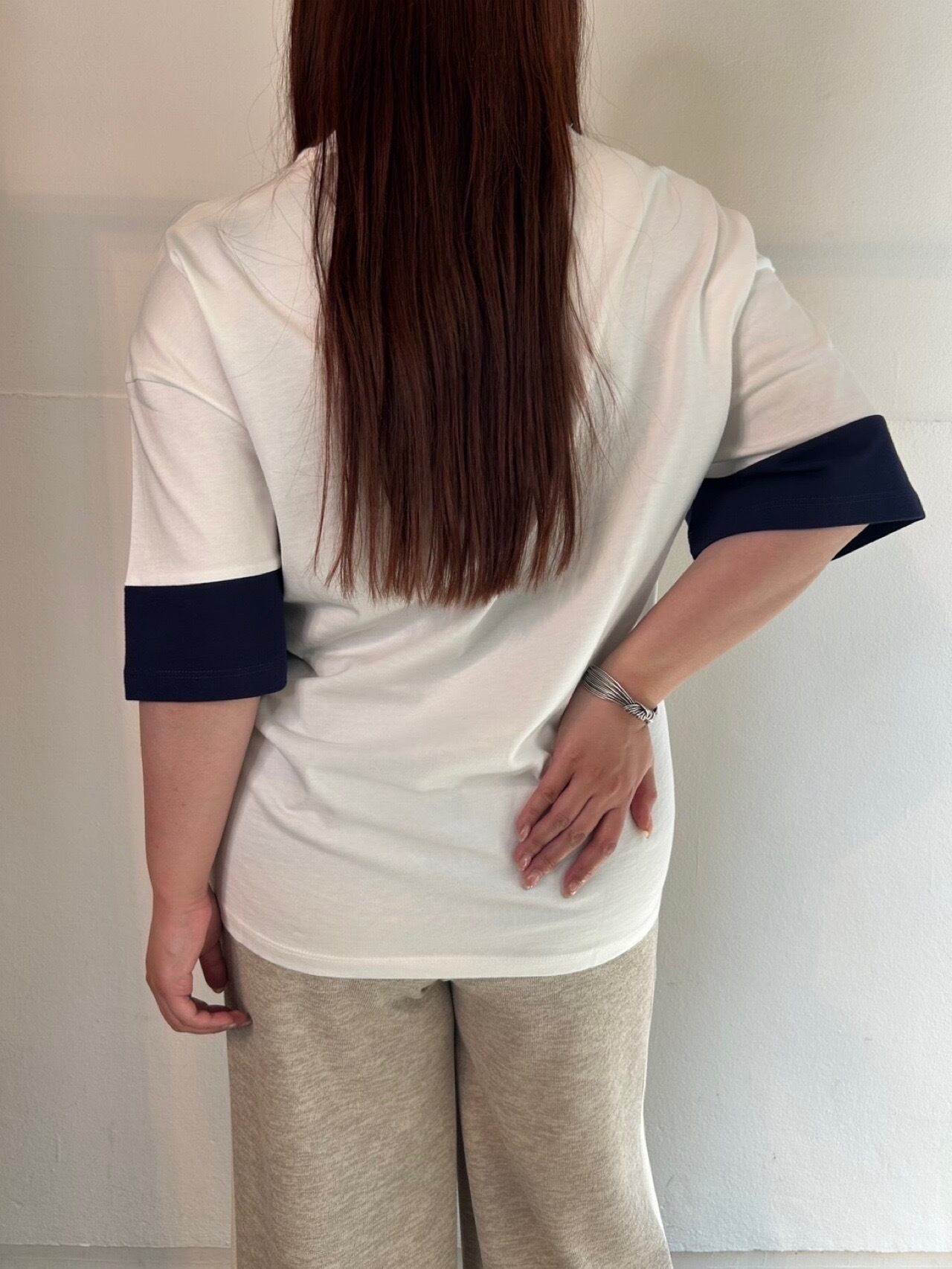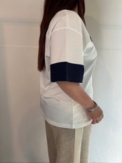 3月30日のインスタライブでご紹介したマッチポイントオーバーサイズTシャツ。白に濃紺の袖と胸にMatch Pointのアートワークデザインが可愛いTシャツ。100%オーガニックコットン製で、非常に柔らかく通気性があります。