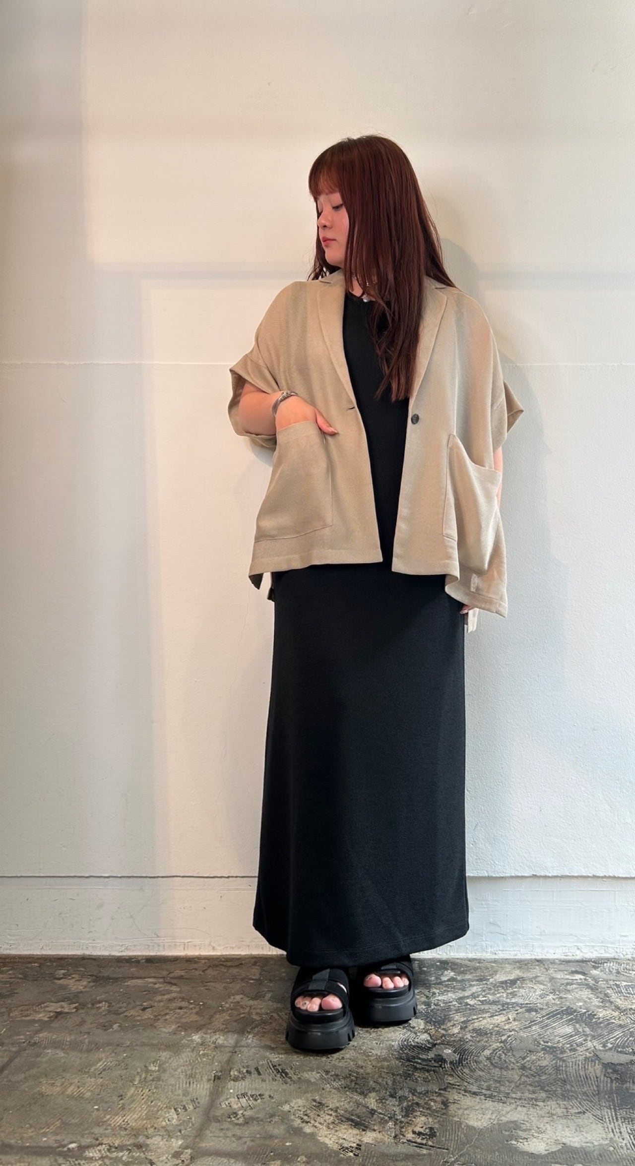 全体的に伸縮性がありラクチンな着心地です◎155cmでペタンコサンダルを履いて丁度ロング丈で着て頂ける着丈です。
