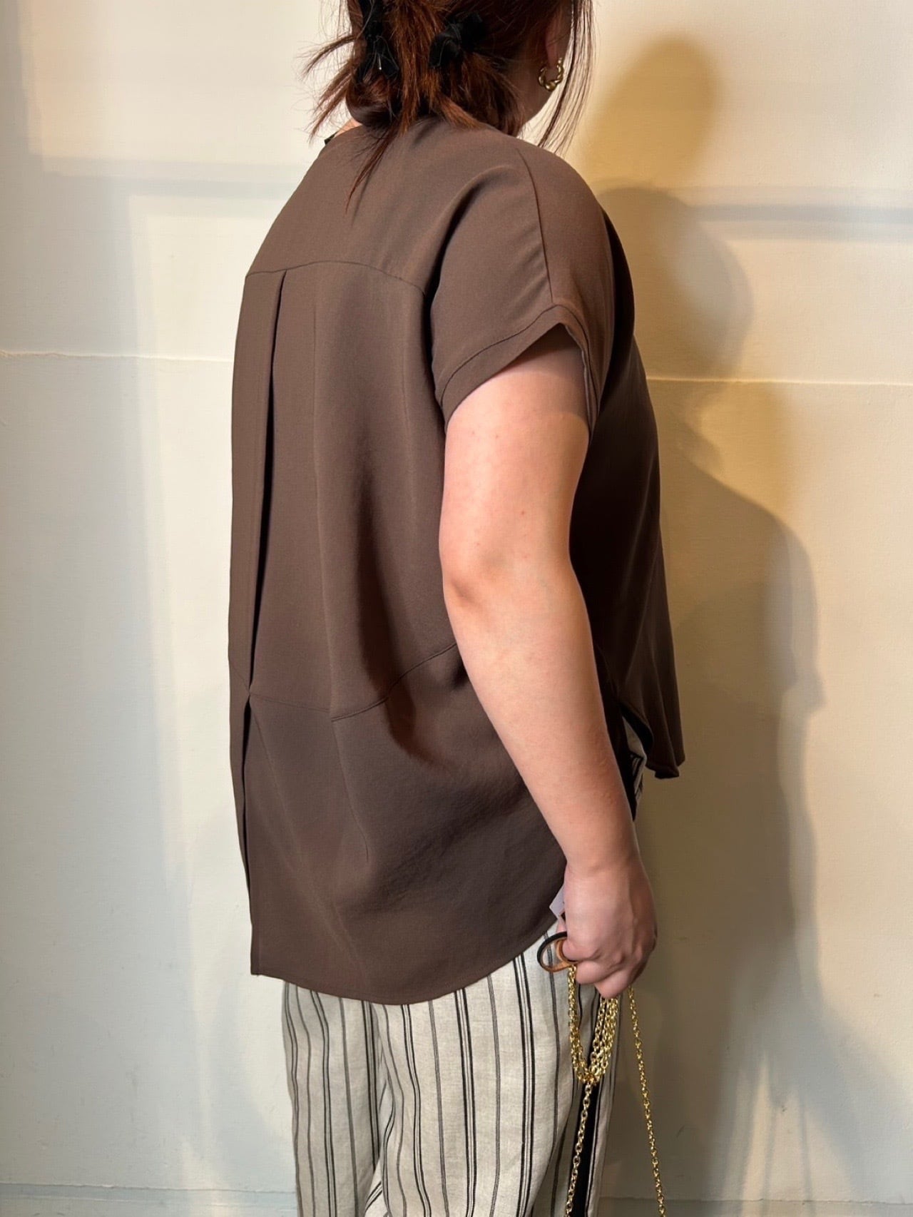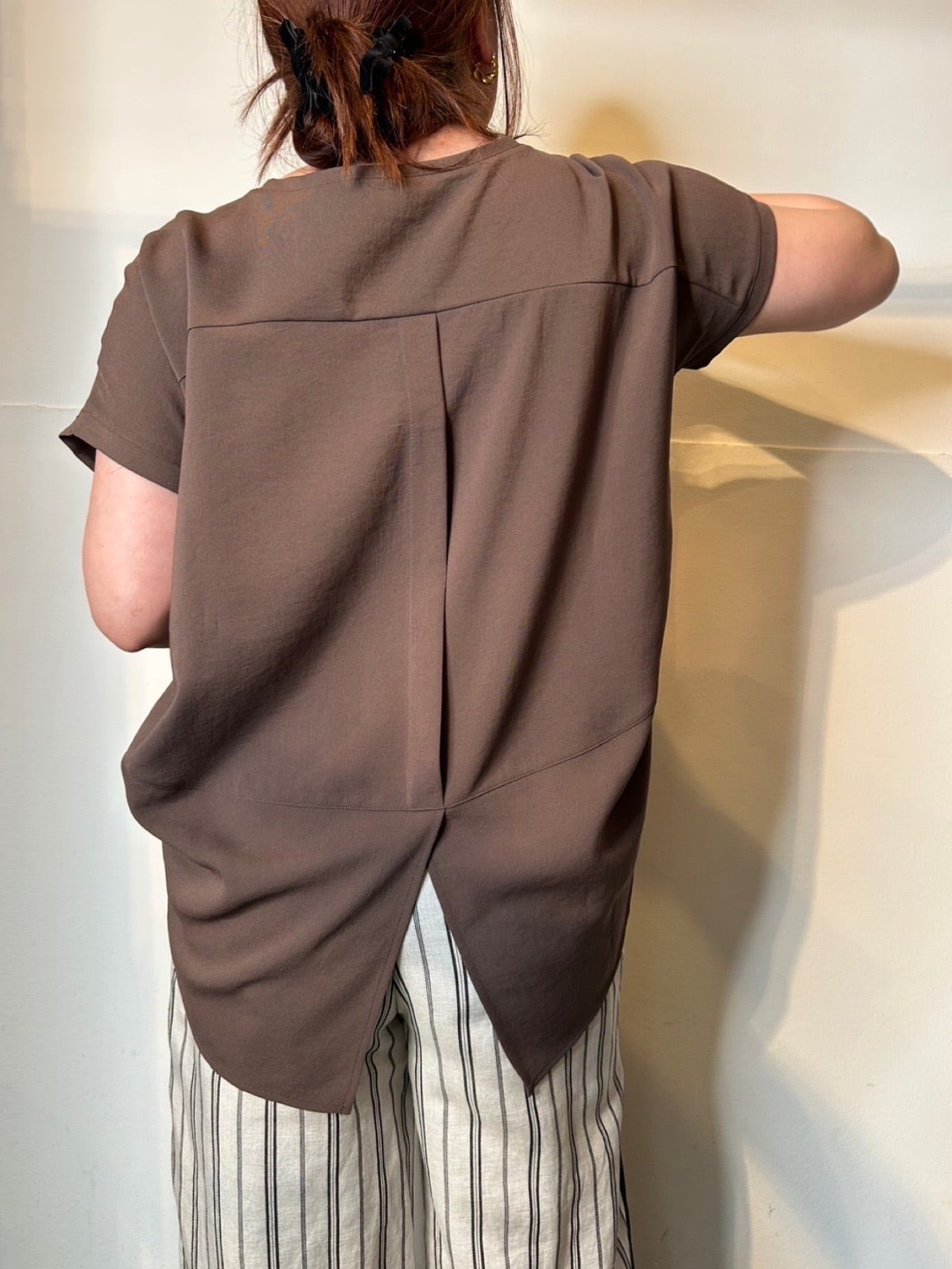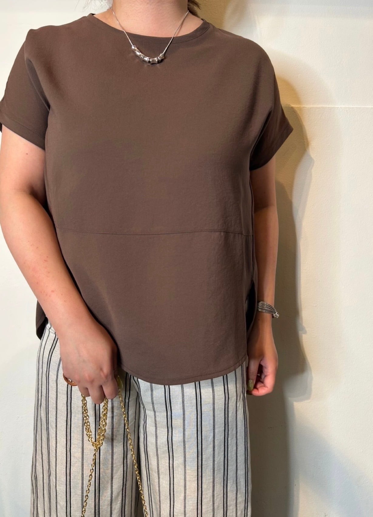 4月28日のインスタライブでご紹介したジョーゼット半袖カットソー。毎年大人気のジョーゼットカットソーが今年も登場。さらさらで涼しく、しわになりにくい。体型カバーも叶えるゆったりシルエット◎