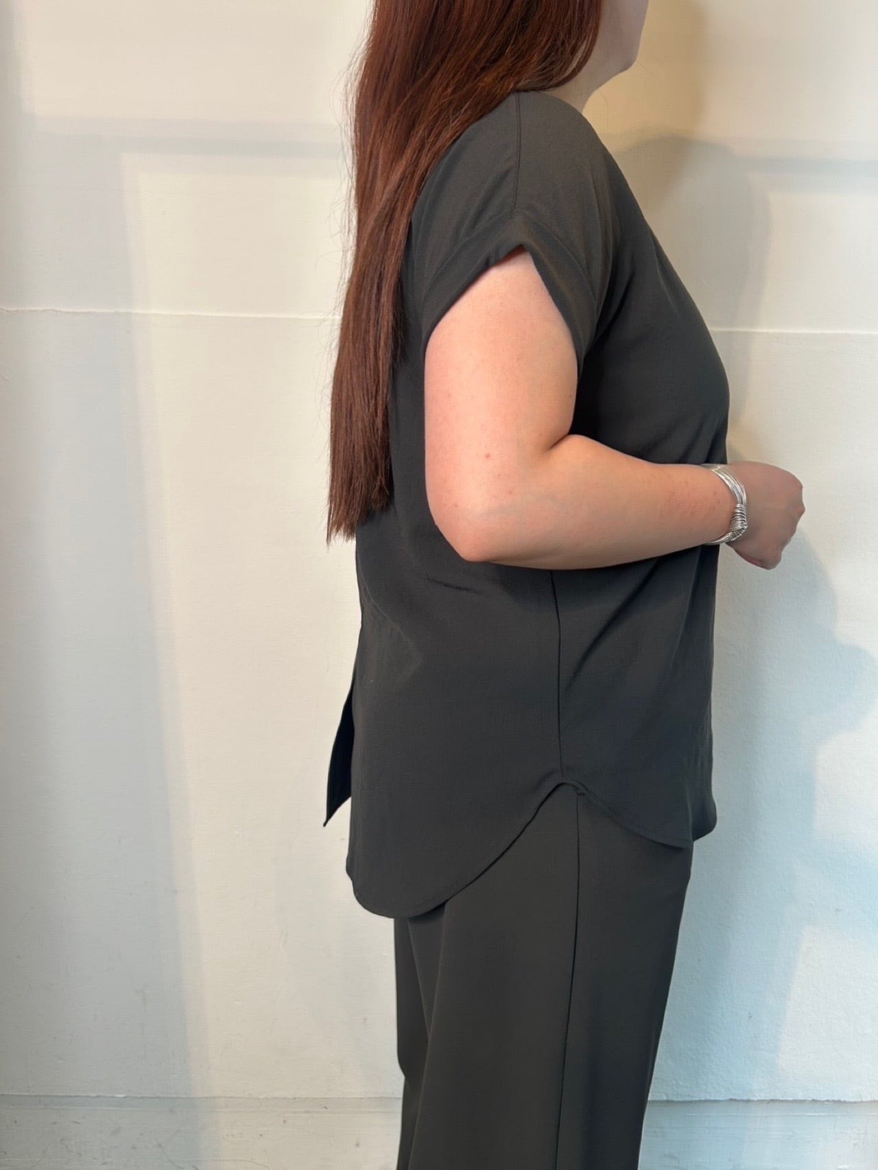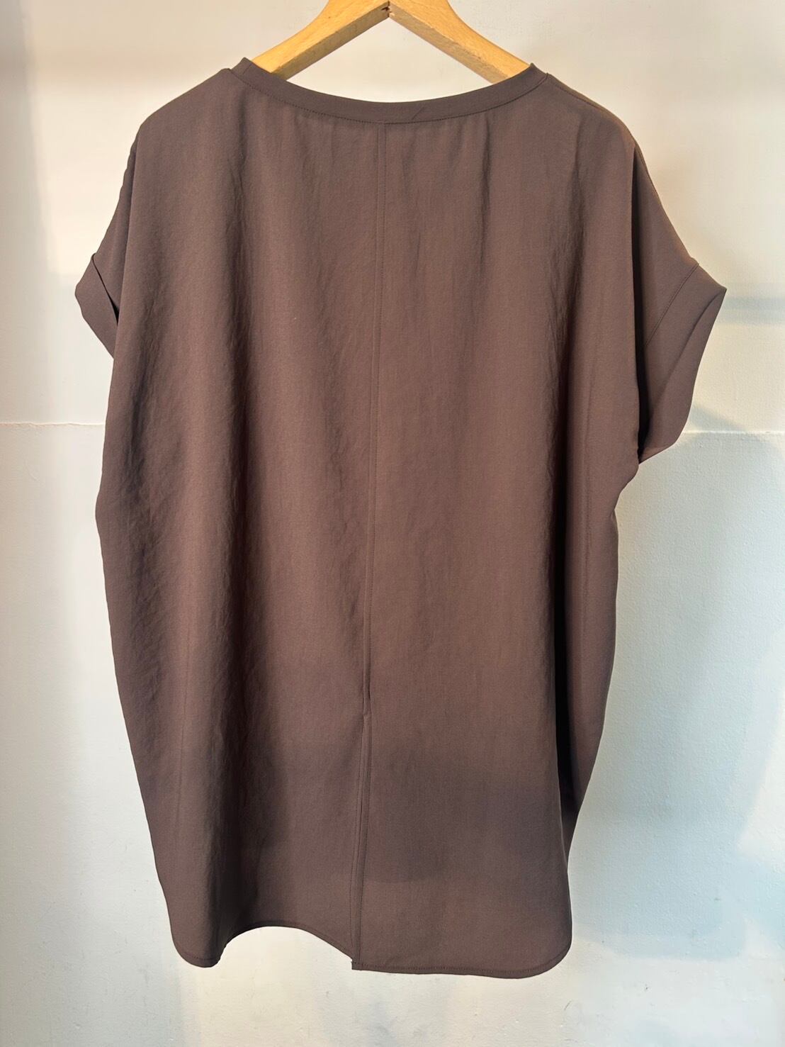 4月28日のインスタライブでご紹介したストレッチシフォンブラウス。かなり伸縮性のある生地を使用。軽くて着心地も良く、暑い夏でもサラッと着ていただけます。折り返しになったフレンチスリーブは二の腕をカバーしつつ華奢見え効果も◎