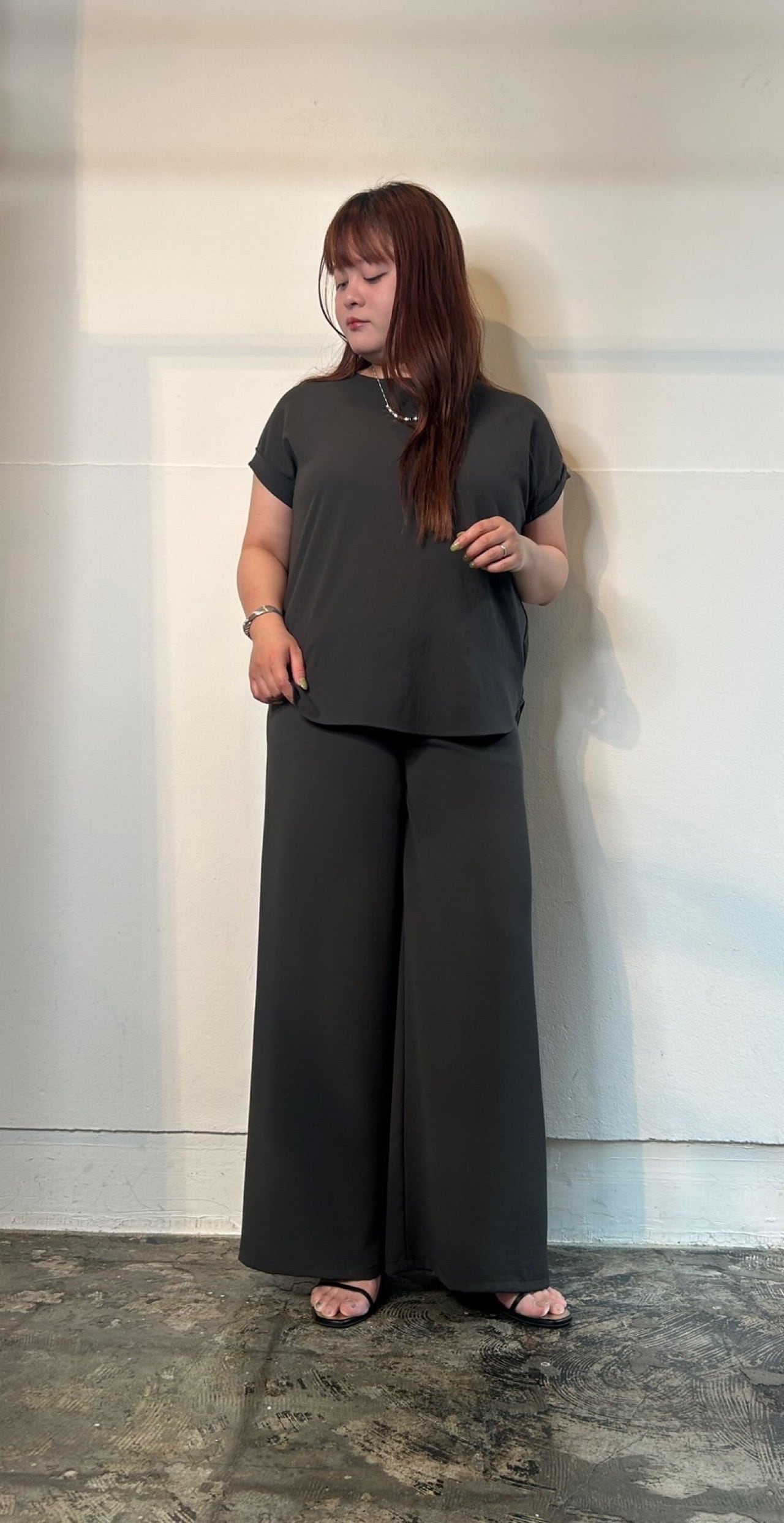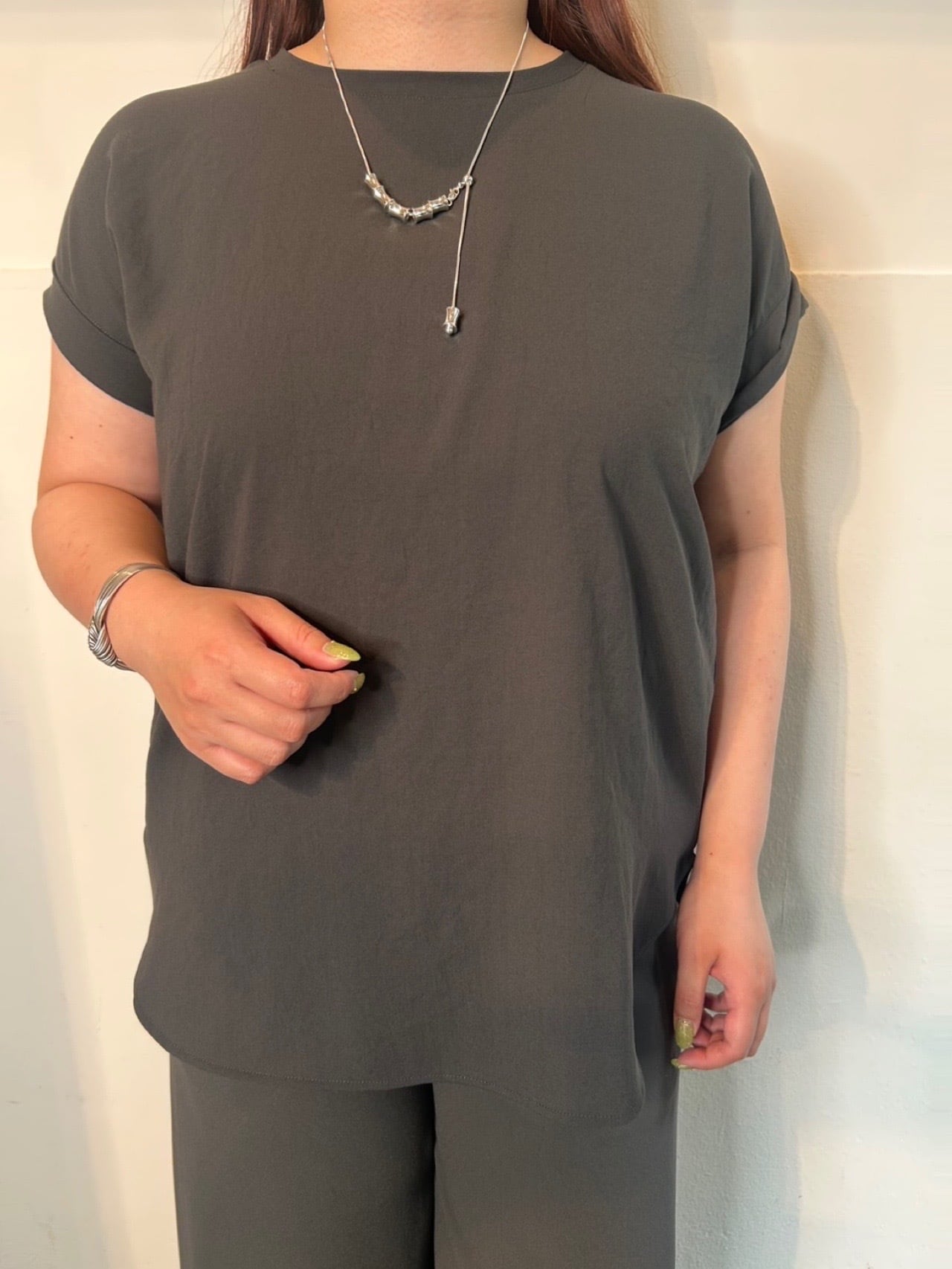 前後差があり、後ろ裾に施されたスリットは抜け感をプラスし、ゆったりしたサイズ感は落ち感がありスッキリとしたシルエットに。同素材のパンツとセットアップで着用可能です。