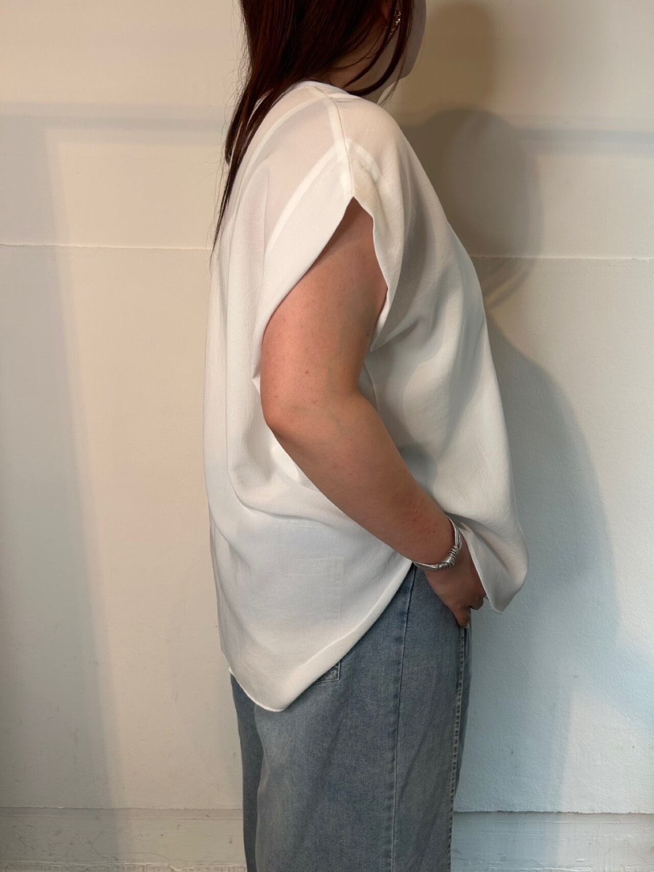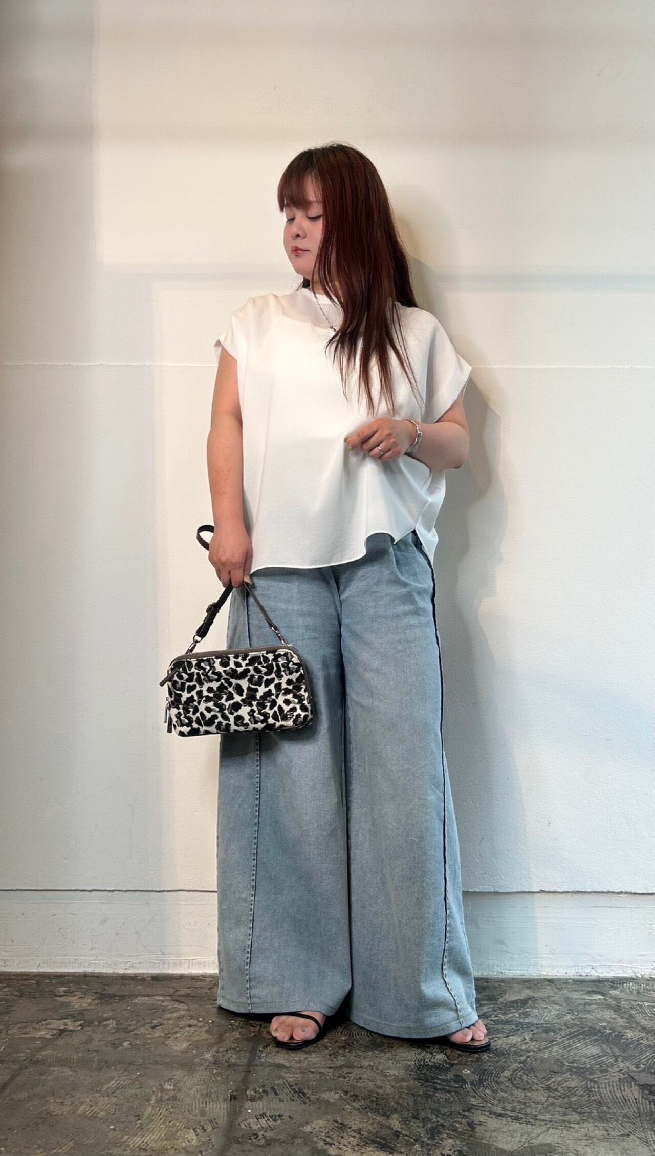 4月28日のインスタライブでご紹介したジョーゼットフレンチスリーブカットソー。毎年大人気のジョーゼットカットソーが今年も登場。さらさらで涼しく、しわになりにくい。体型カバーも叶えるゆったりシルエット◎